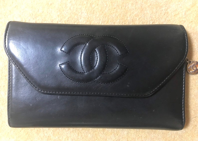 This is a Chanel vintage purse wallet in black calfskin from the 90's.
