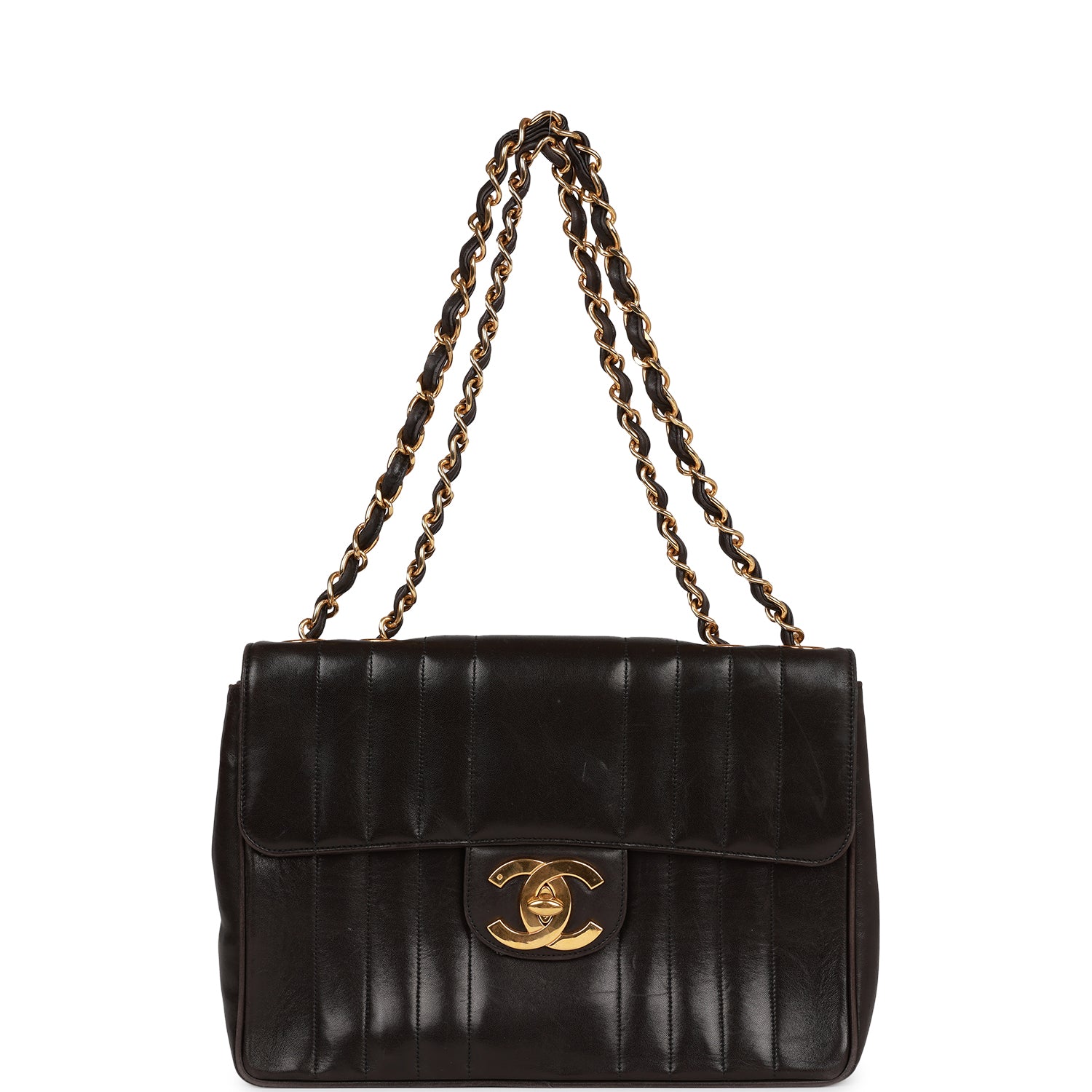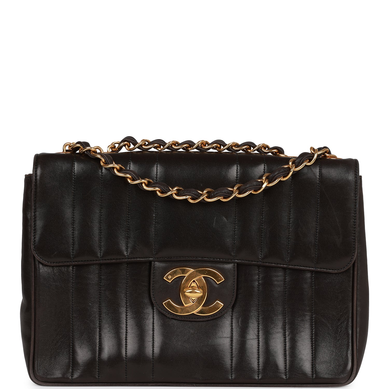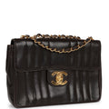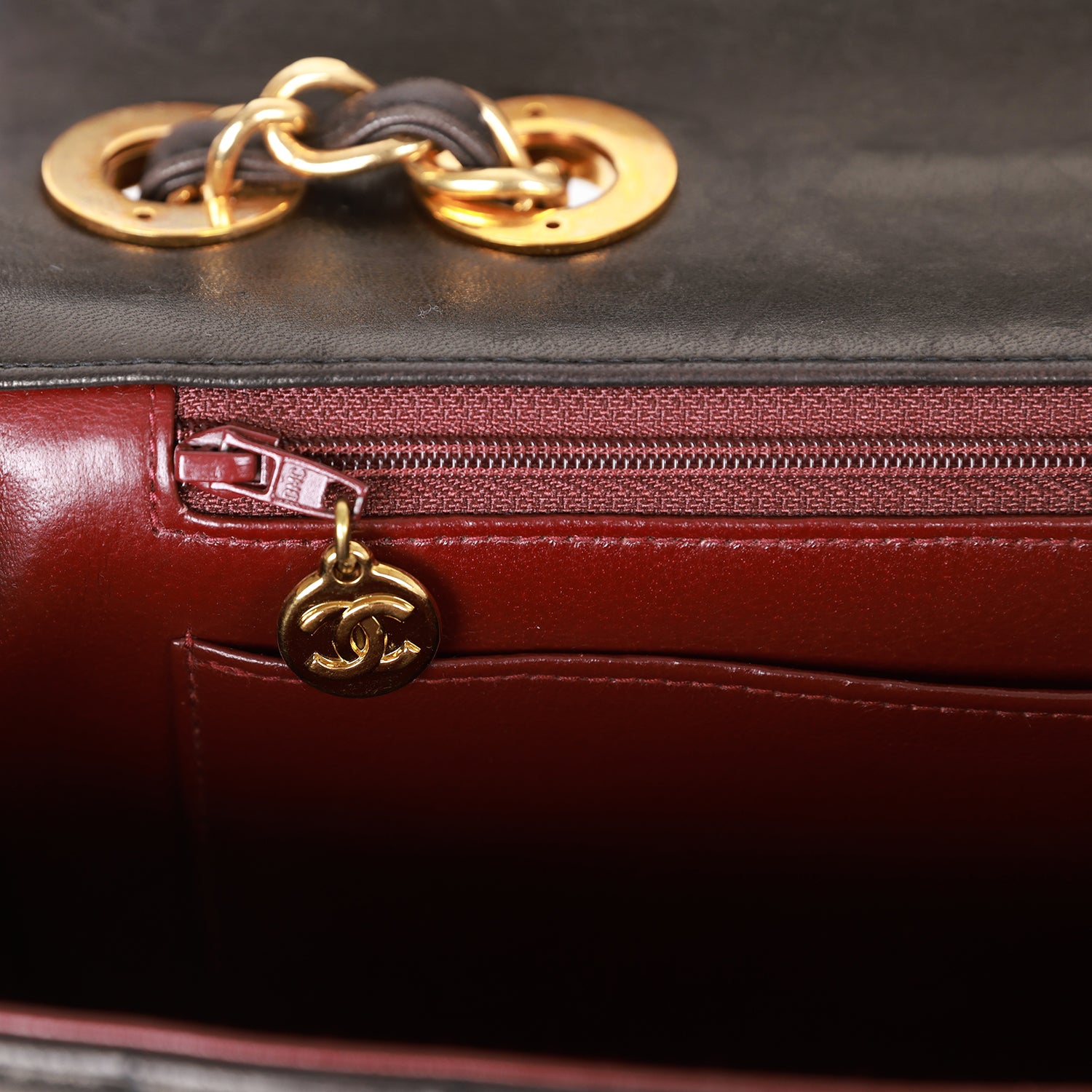 Vintage Chanel Mademoiselle XL Jumbo Single Flap Black Lambskin Gold Hardware