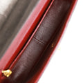 The interior is lined in burgundy leather and includes one zip pocket and a slip pocket underneath on the rear wall.
