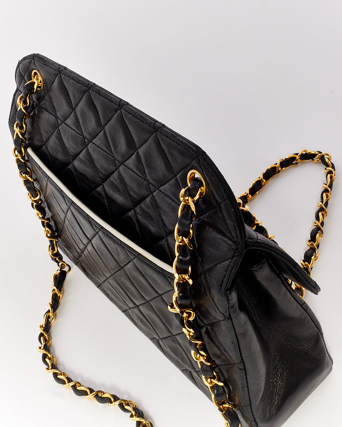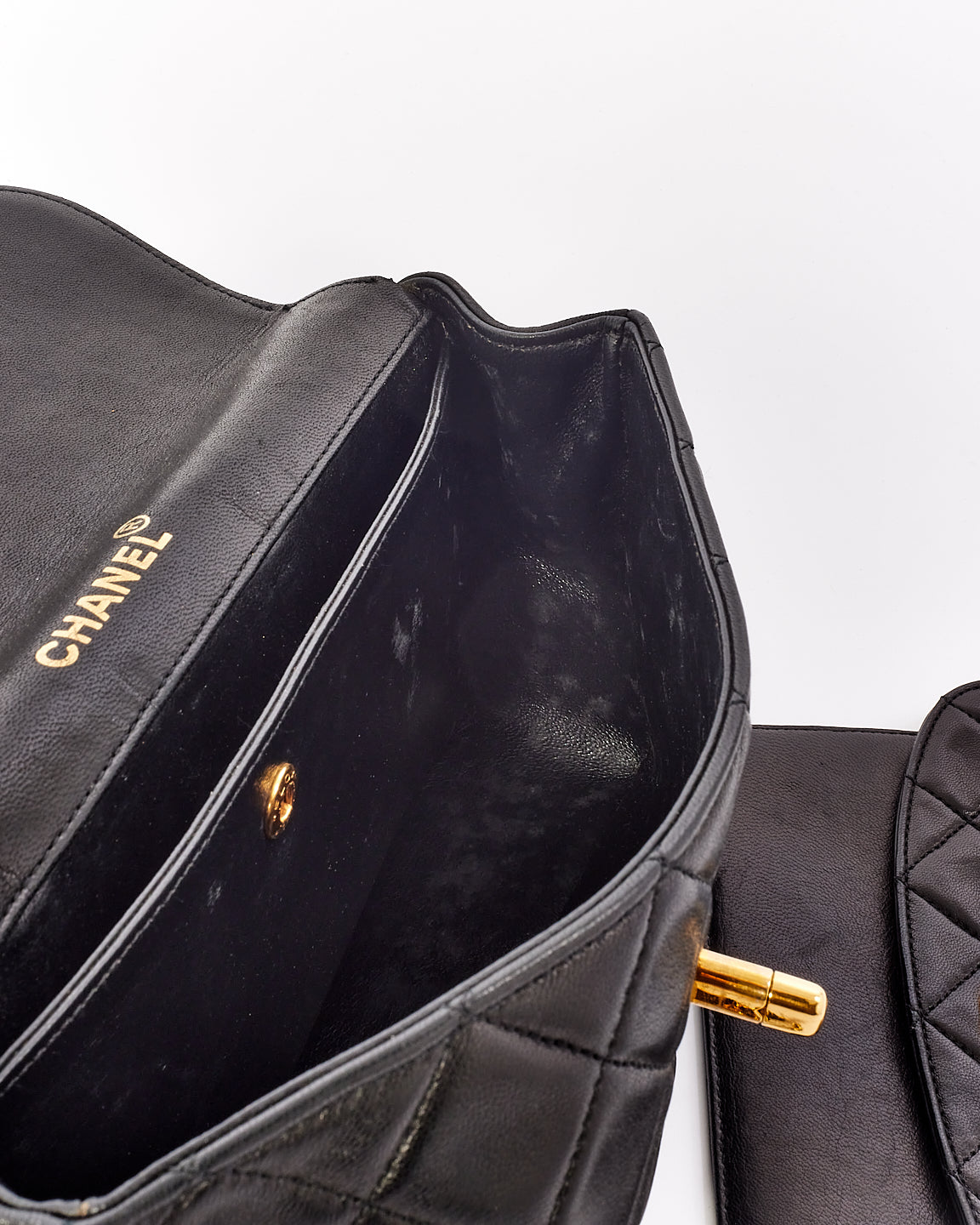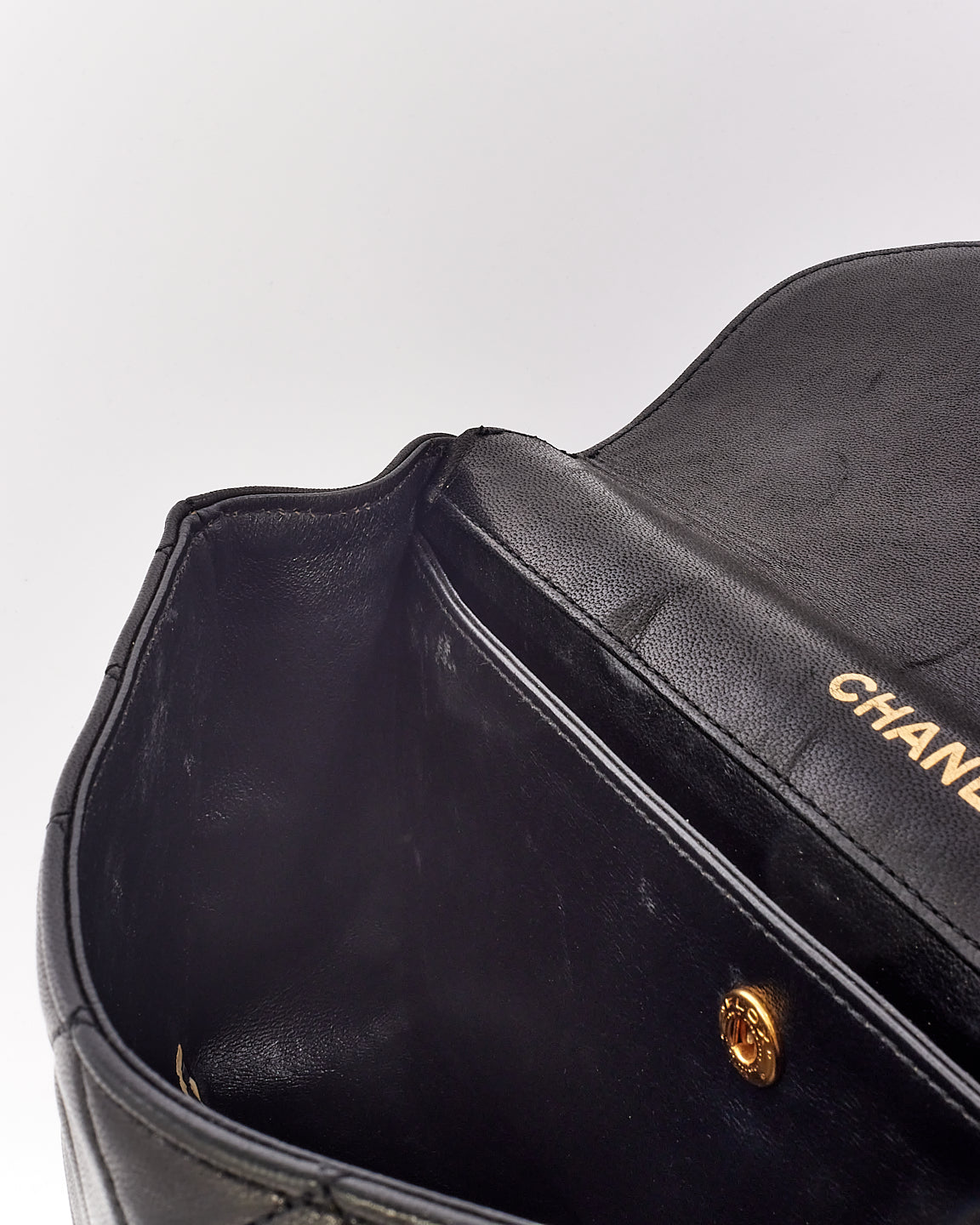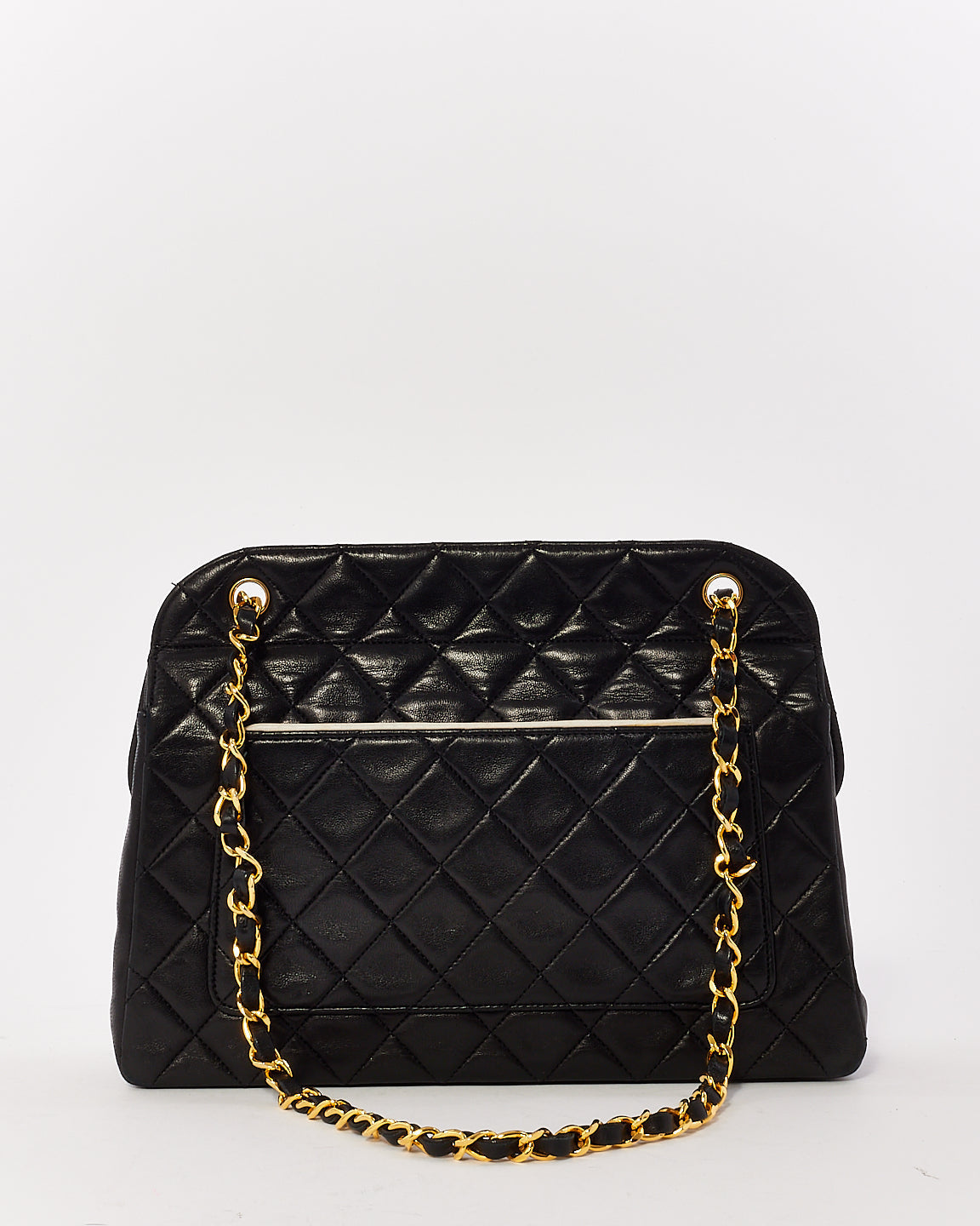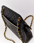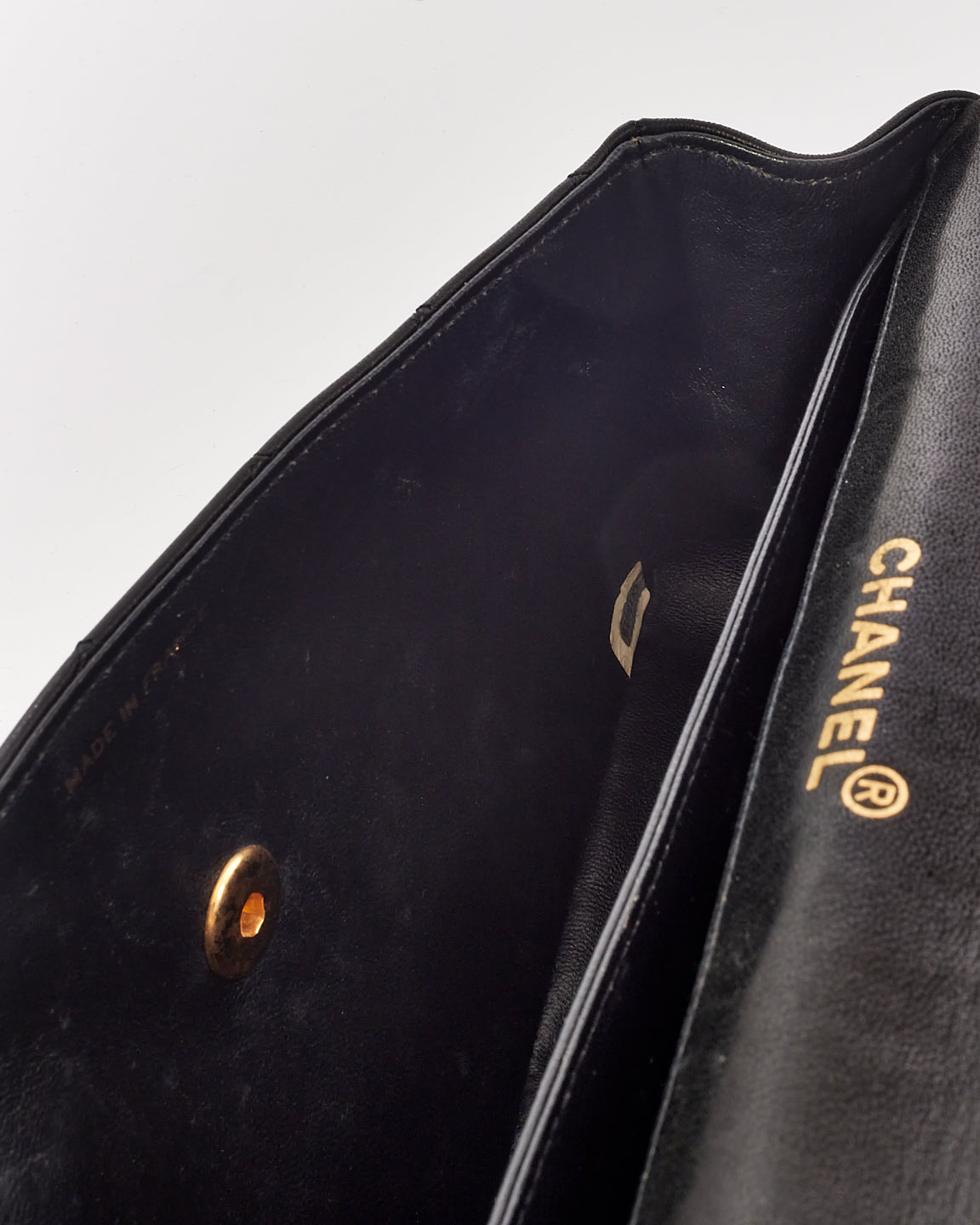 Chanel Vintage Black Lambskin Leather Single Flap Pocket Chain Shoulder Bag