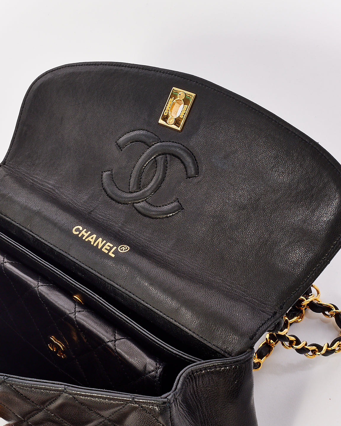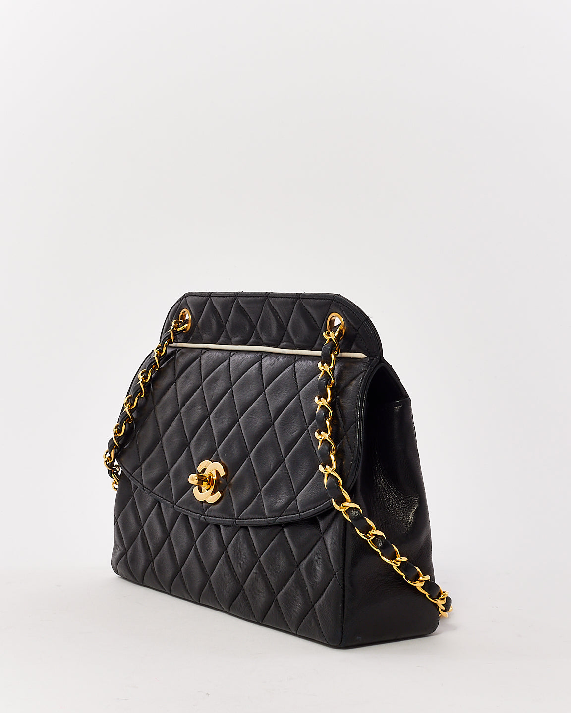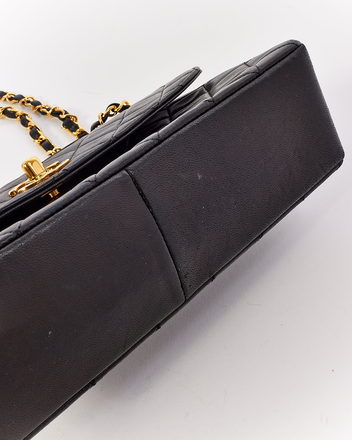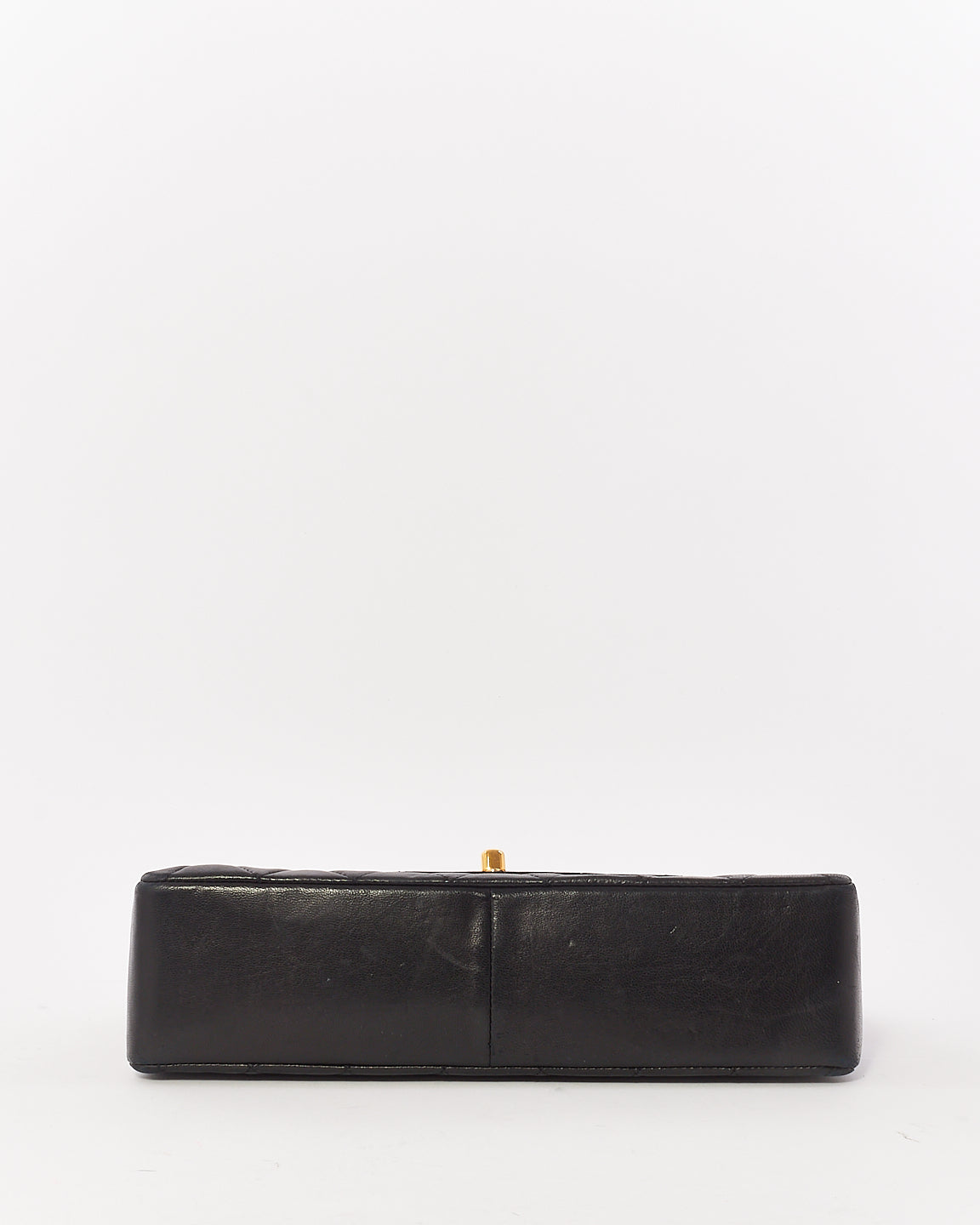 Chanel Vintage Black Lambskin Leather Single Flap Pocket Chain Shoulder Bag