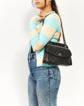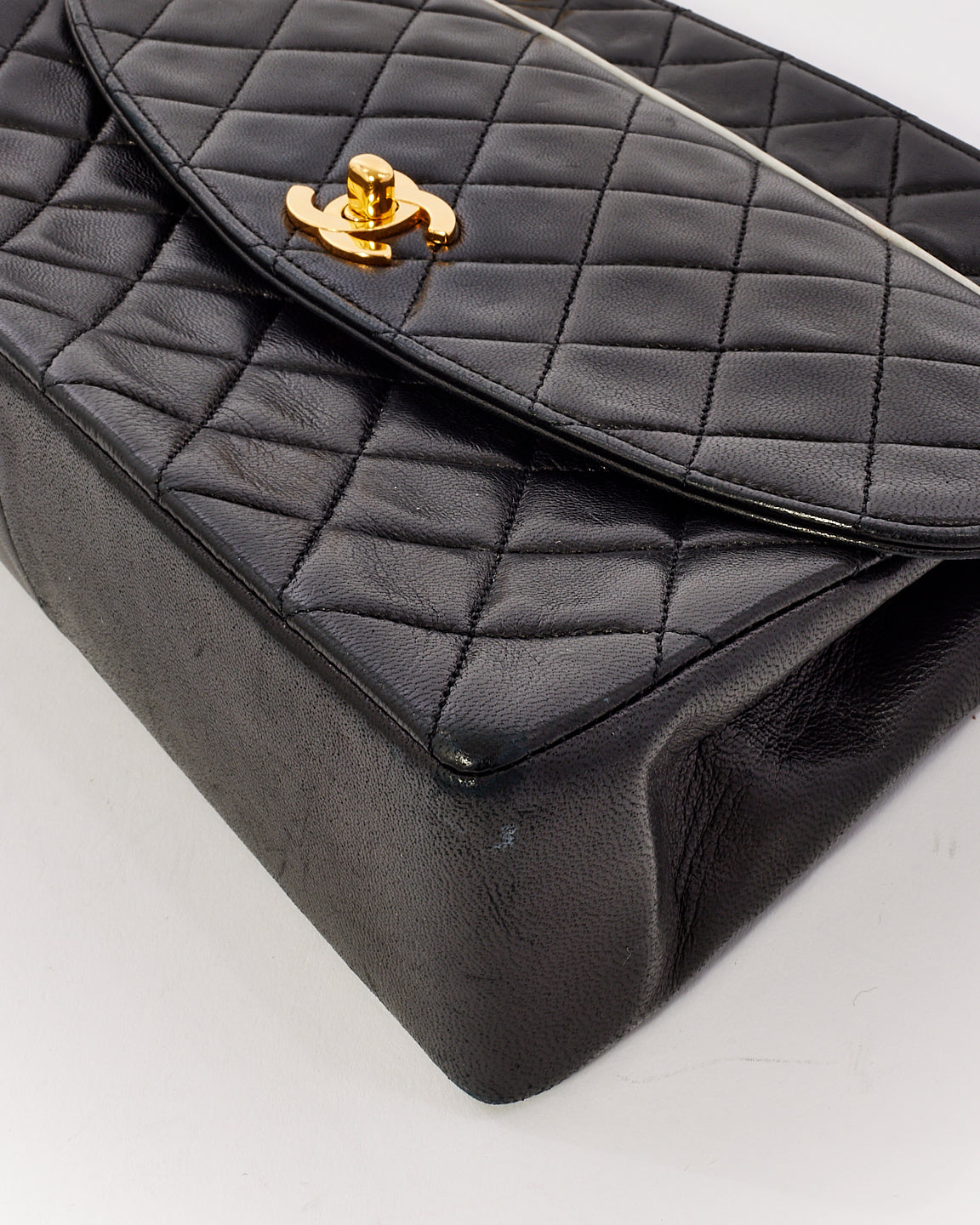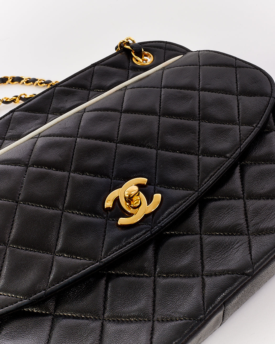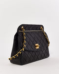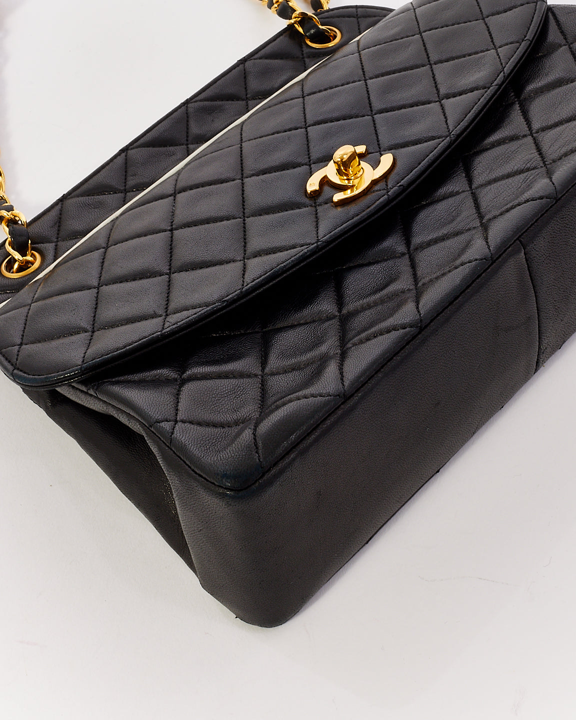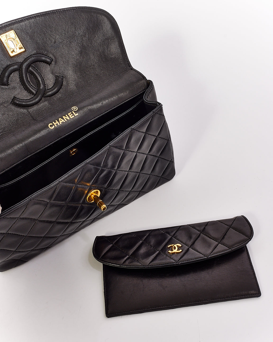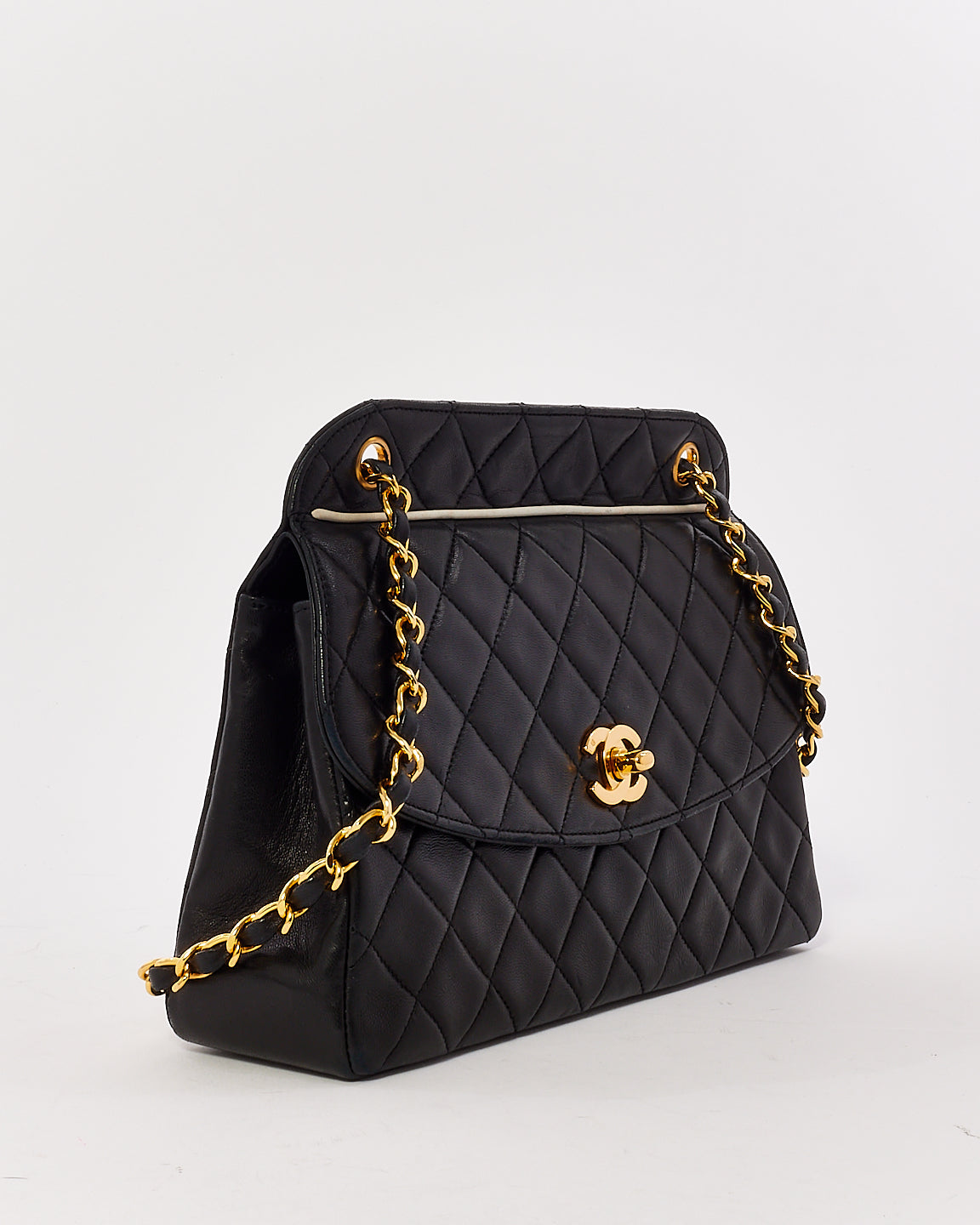 Chanel Vintage Black Lambskin Leather Single Flap Pocket Chain Shoulder Bag