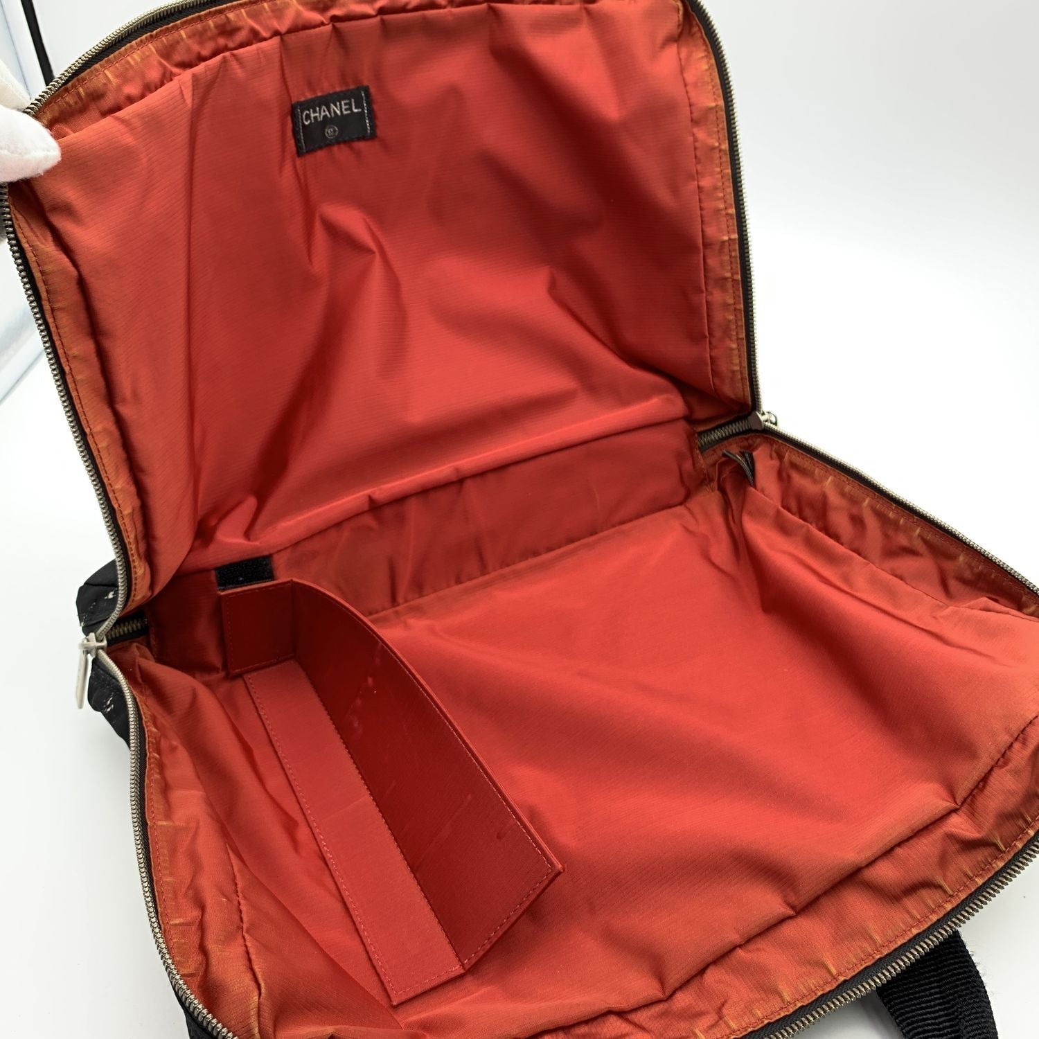 Red Nylon Interior 'Chanel', 'Made In France' And Hologram Tag Inside Details Material: Nylon Color: Black Model: Old Travel Line Satchel Gender: Women Country Of Manufacture: France Size: Medium Style: Satchel Closure: Zip Pattern: Solid Lining Material: Nylon DustBag: No Box: No Keys: No Condition A - Excellent Gently Used.