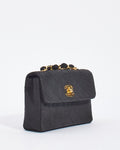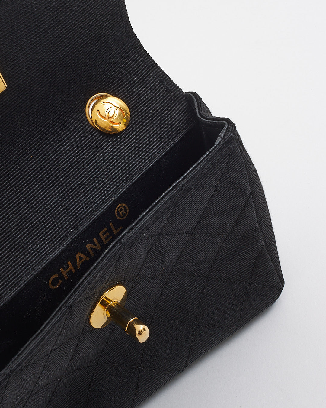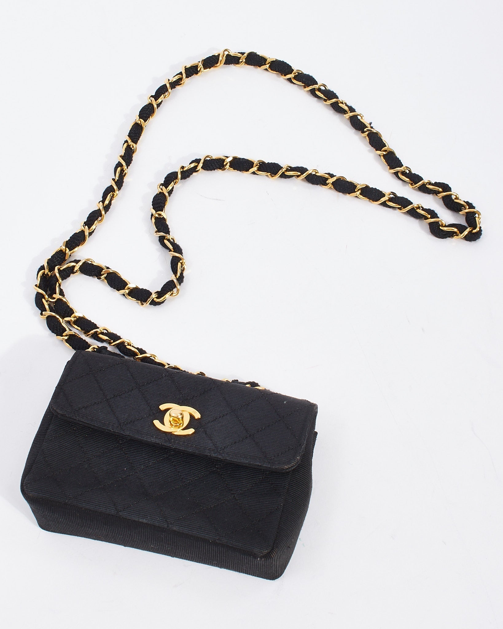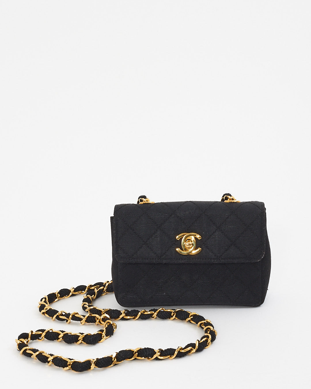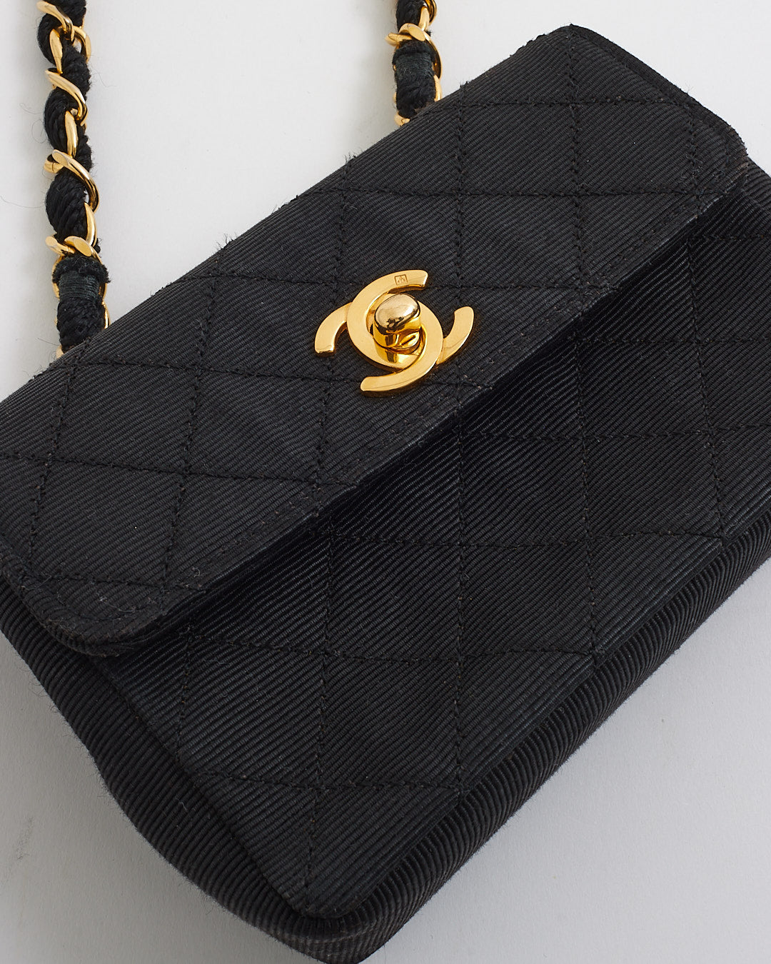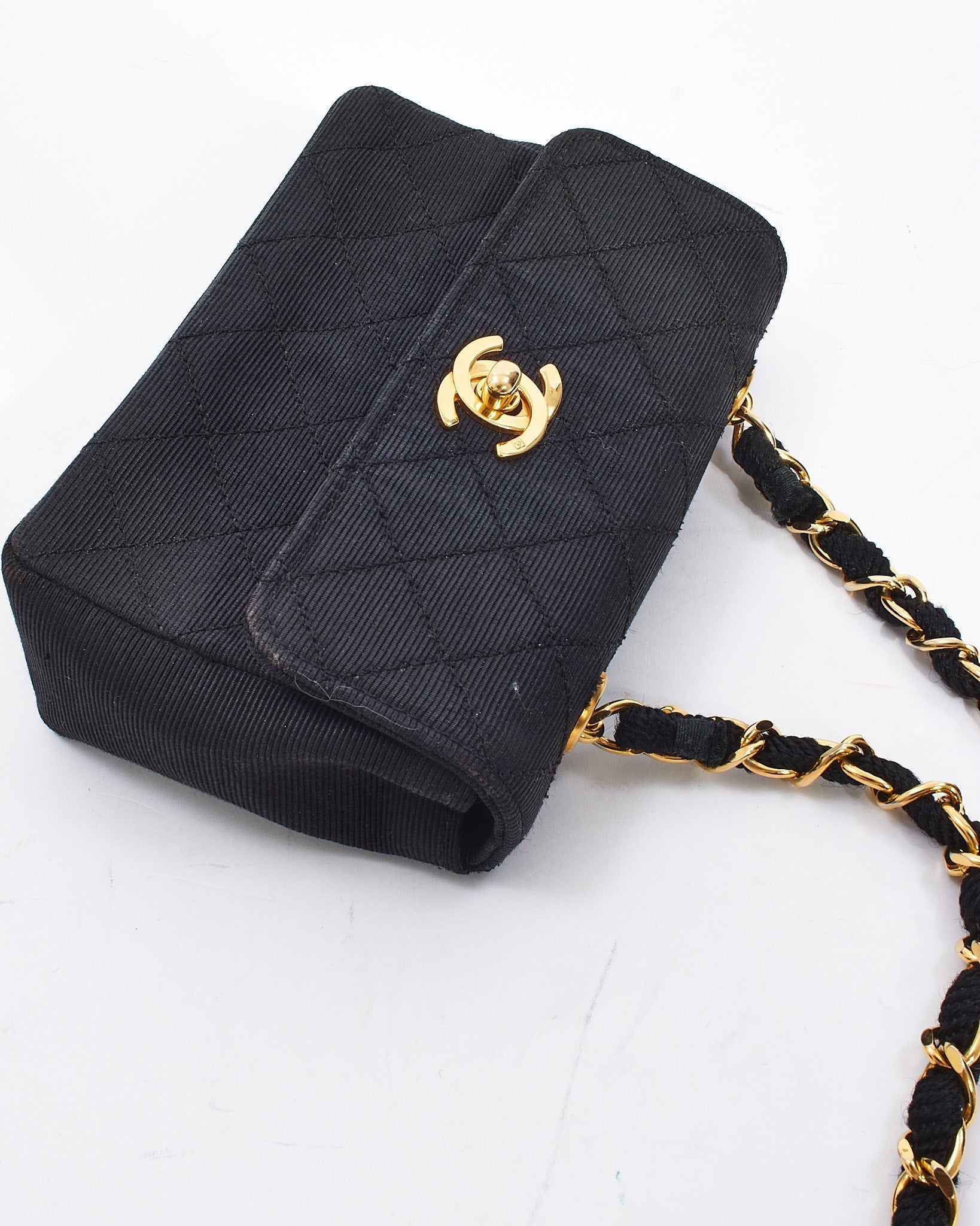 Chanel Vintage Black Quilted Canvas Mini Flap Bag GHW
