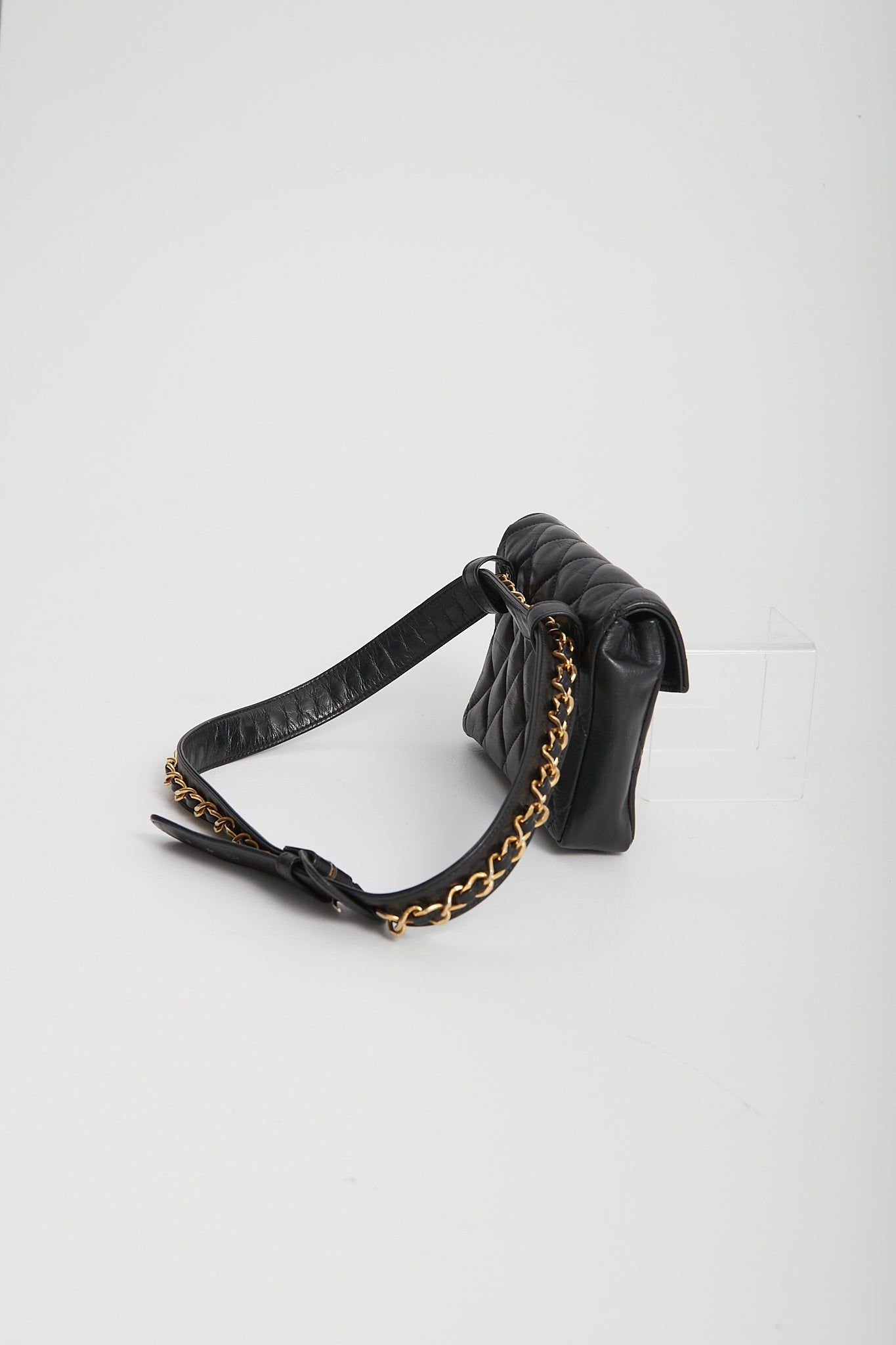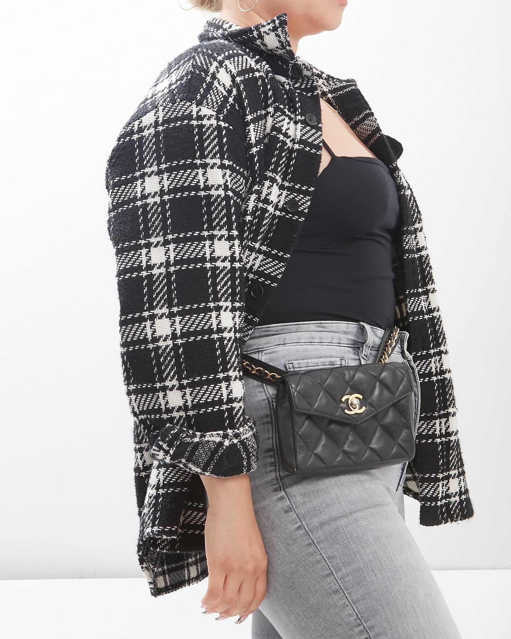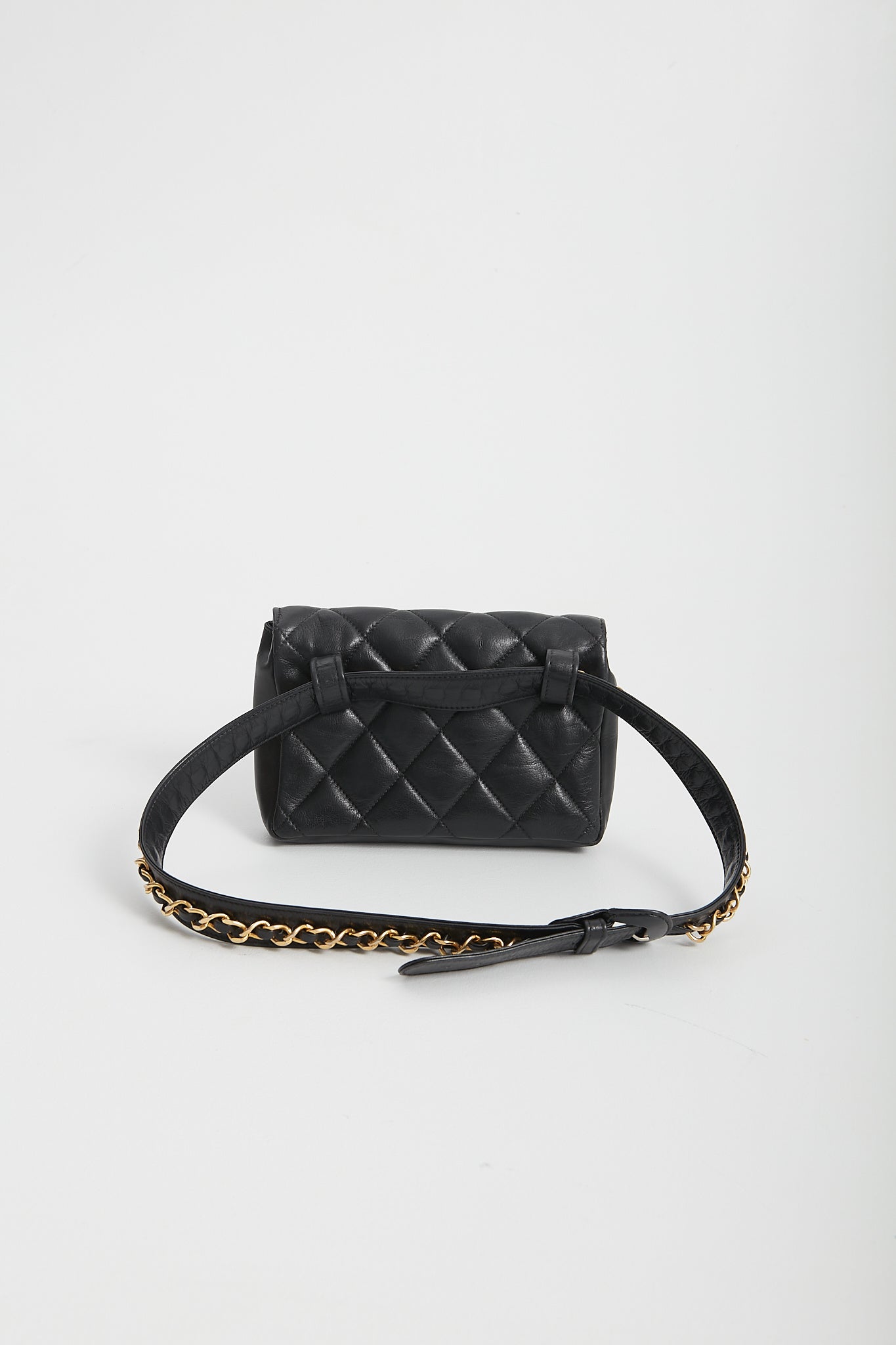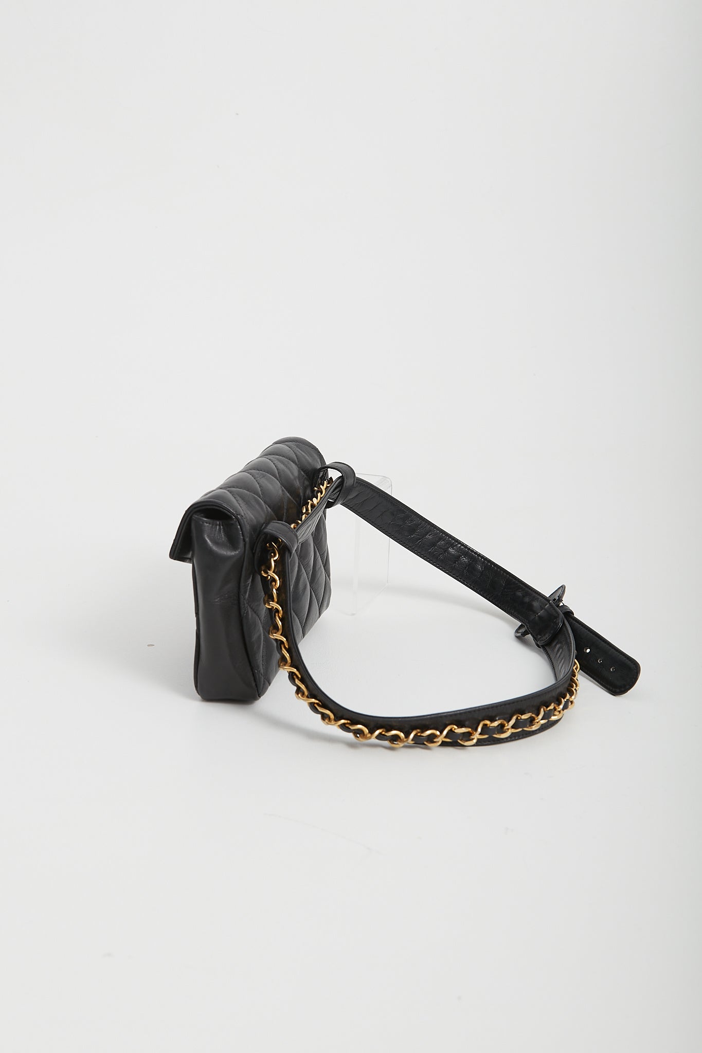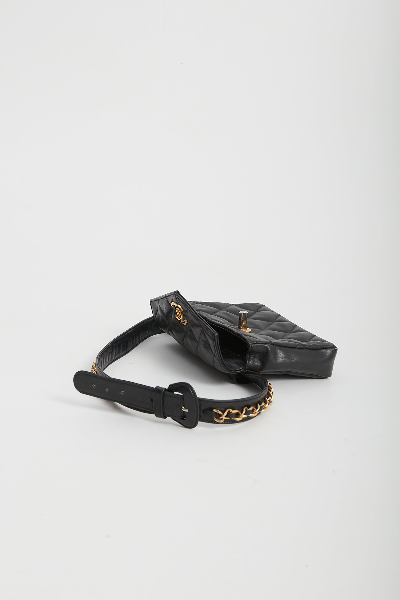 Chanel Vintage Black Quilted Lambskin Waist Belt Bag GHW