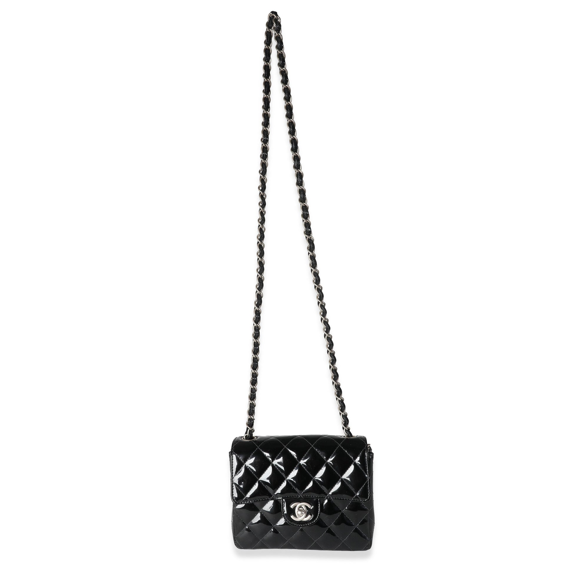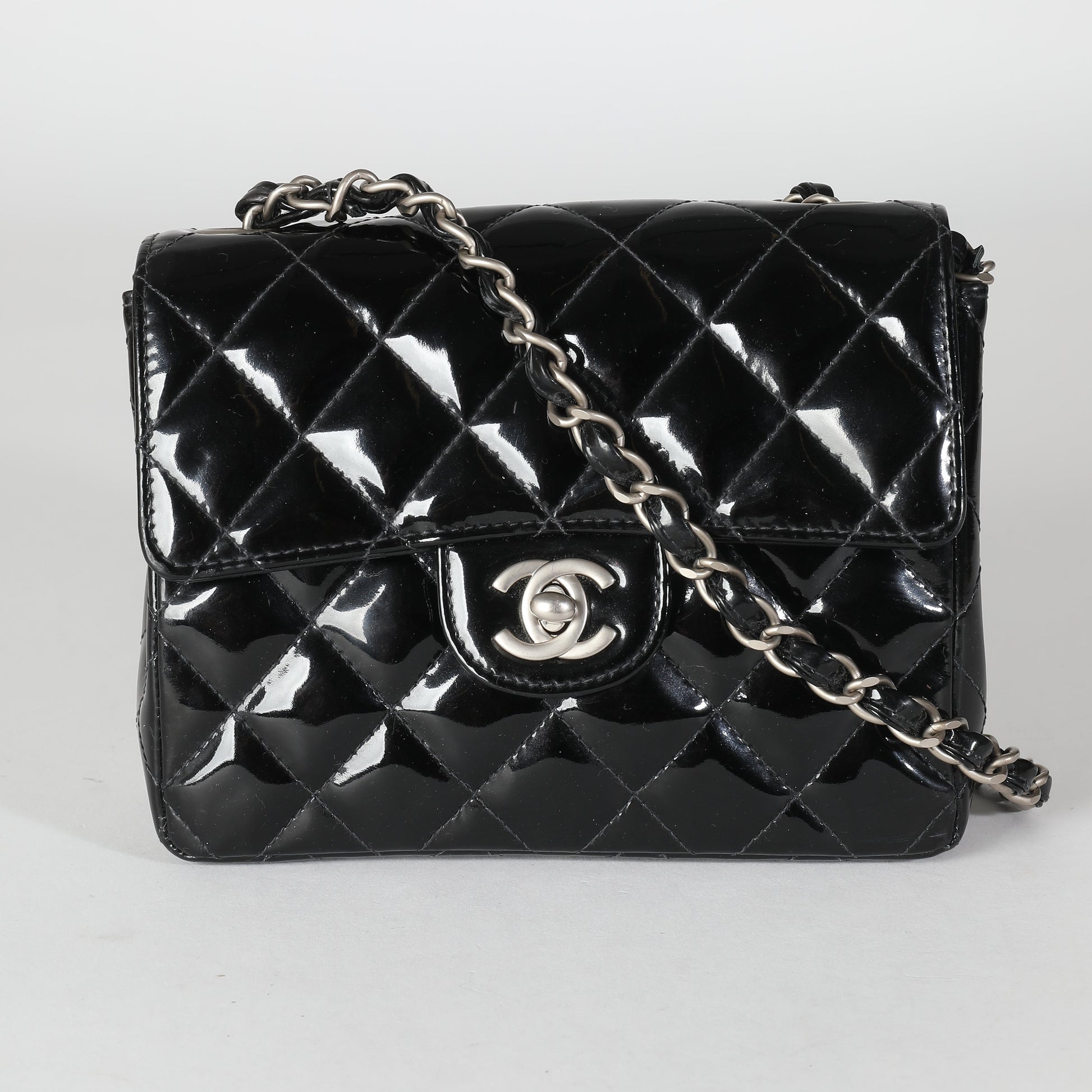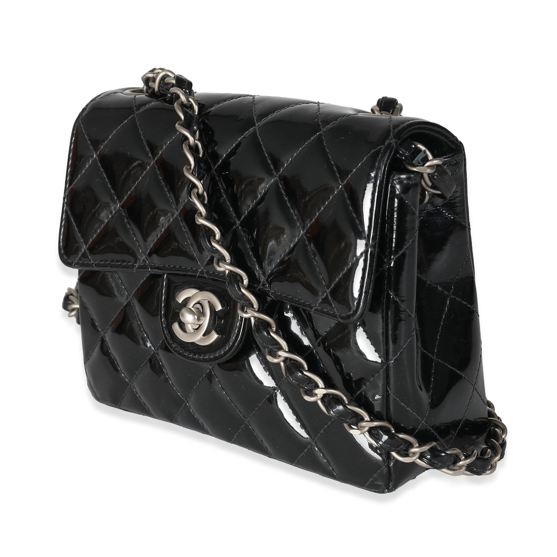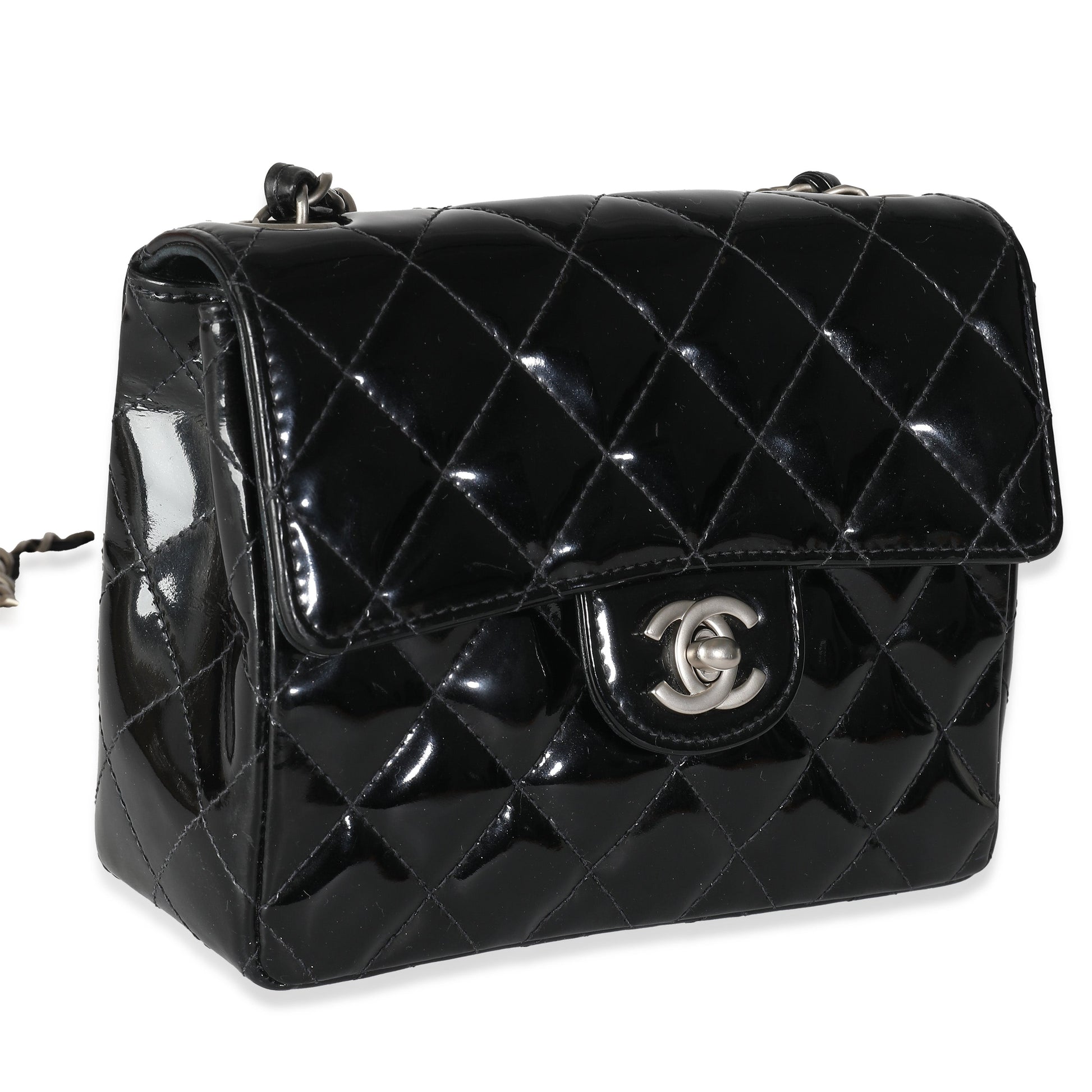Listing Title: Chanel Vintage Black Quilted Patent Mini Square Flap Bag