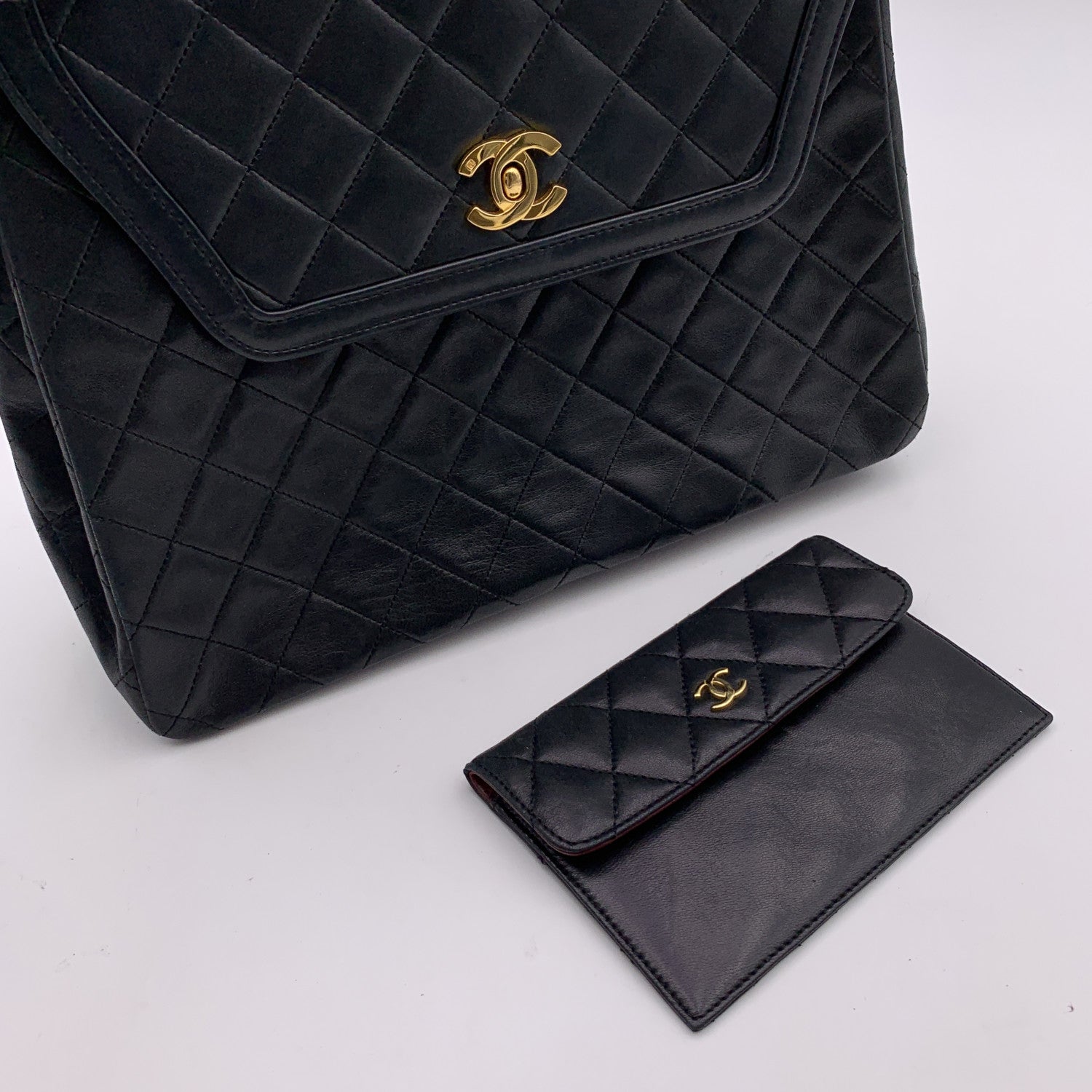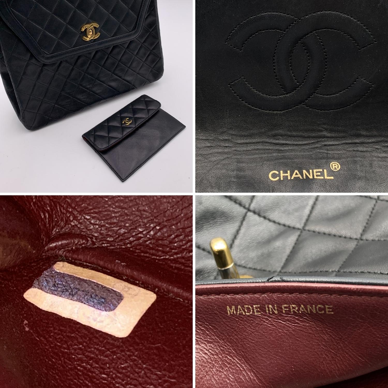 Chanel Vintage Black Quilted Trapeze Flap Shoulder Bag With Wallet