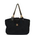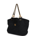 Vintage Chanel Straw Tote Black Raffia Gold Hardware