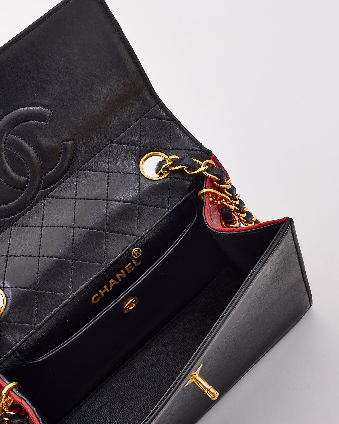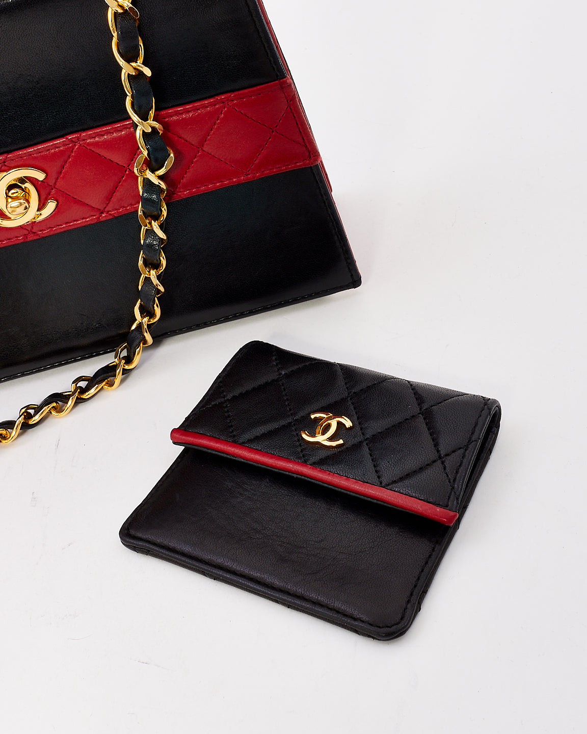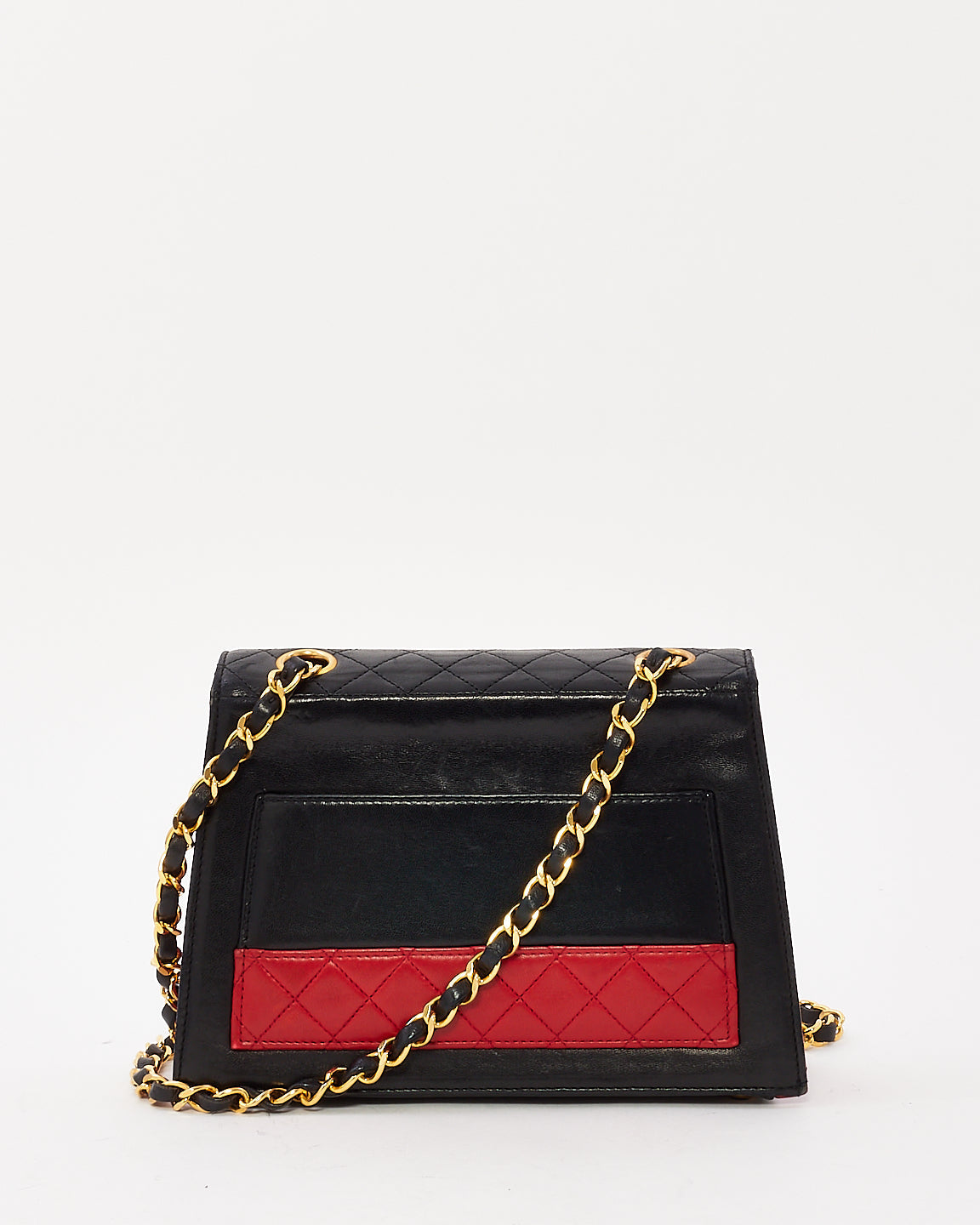 Chanel Vintage Black & Red Leather Trapezoid Shoulder Bag GHW
