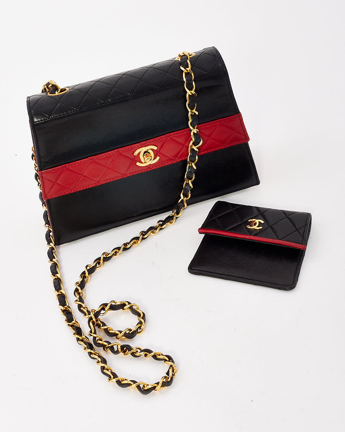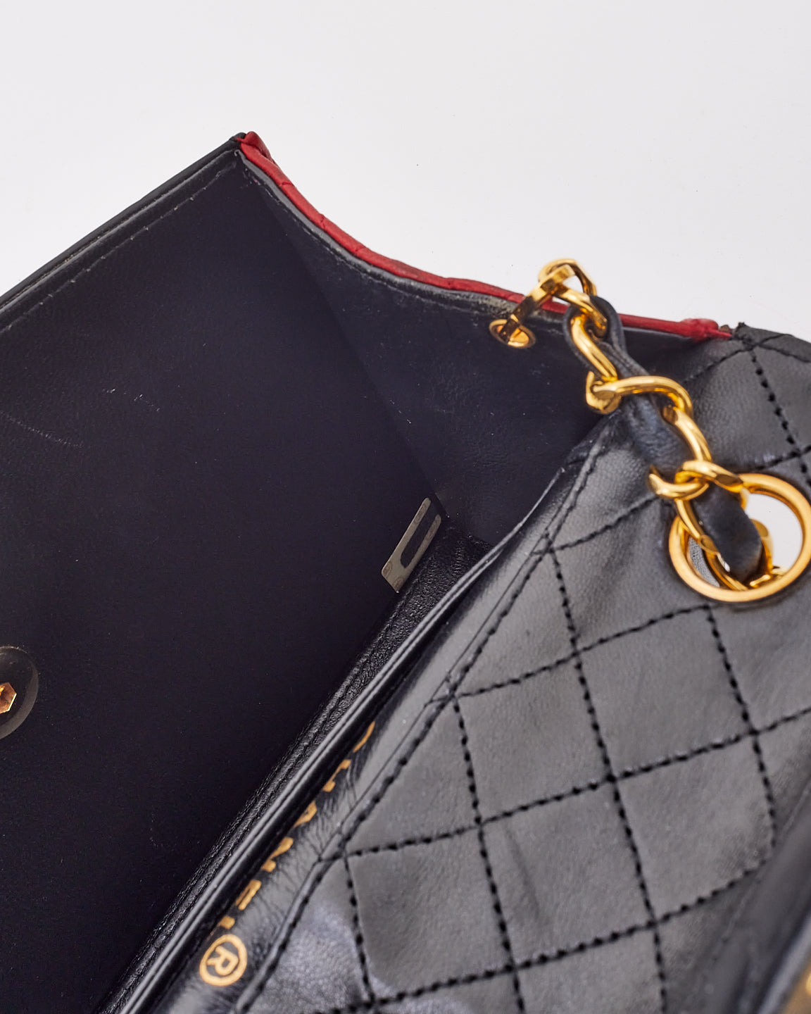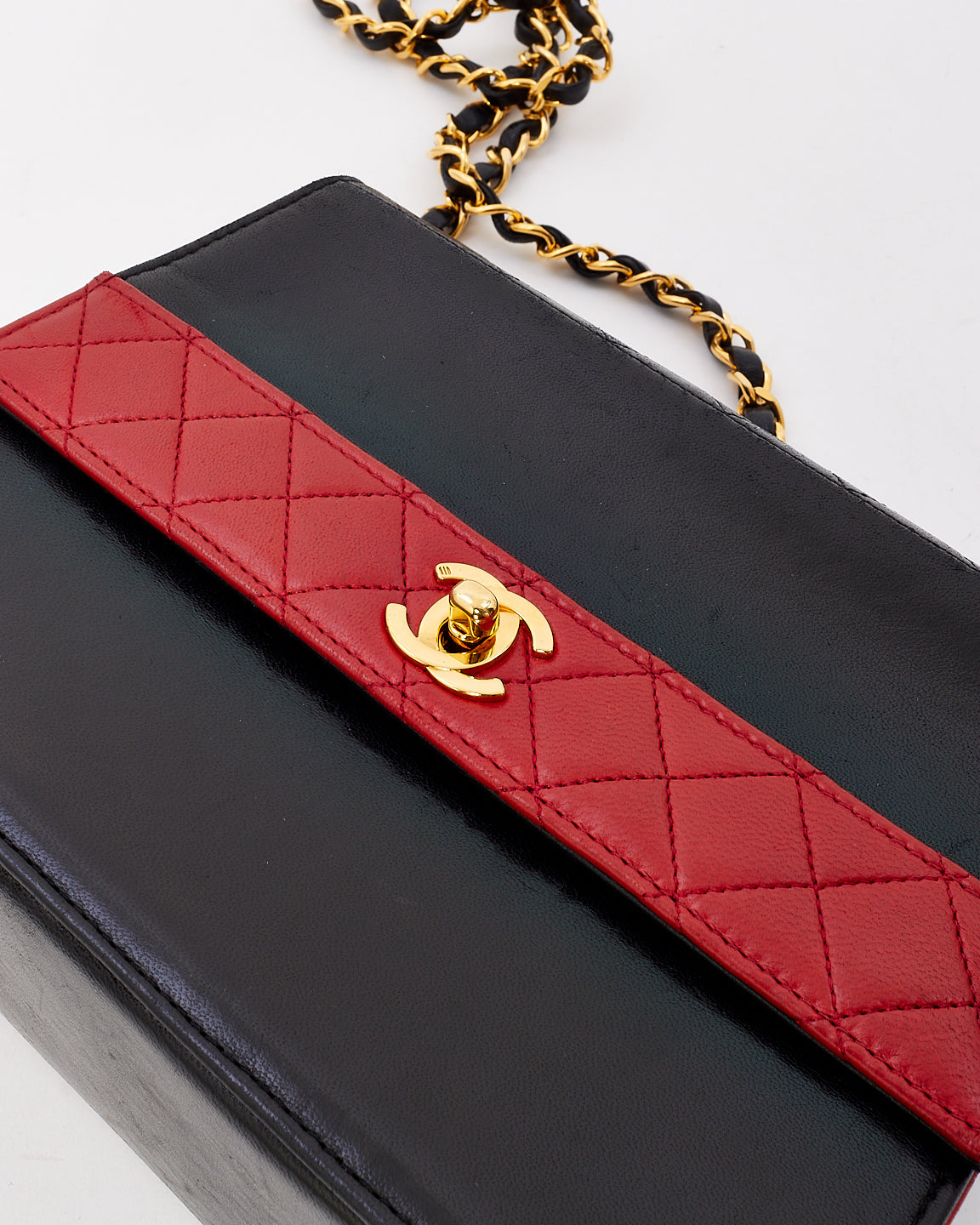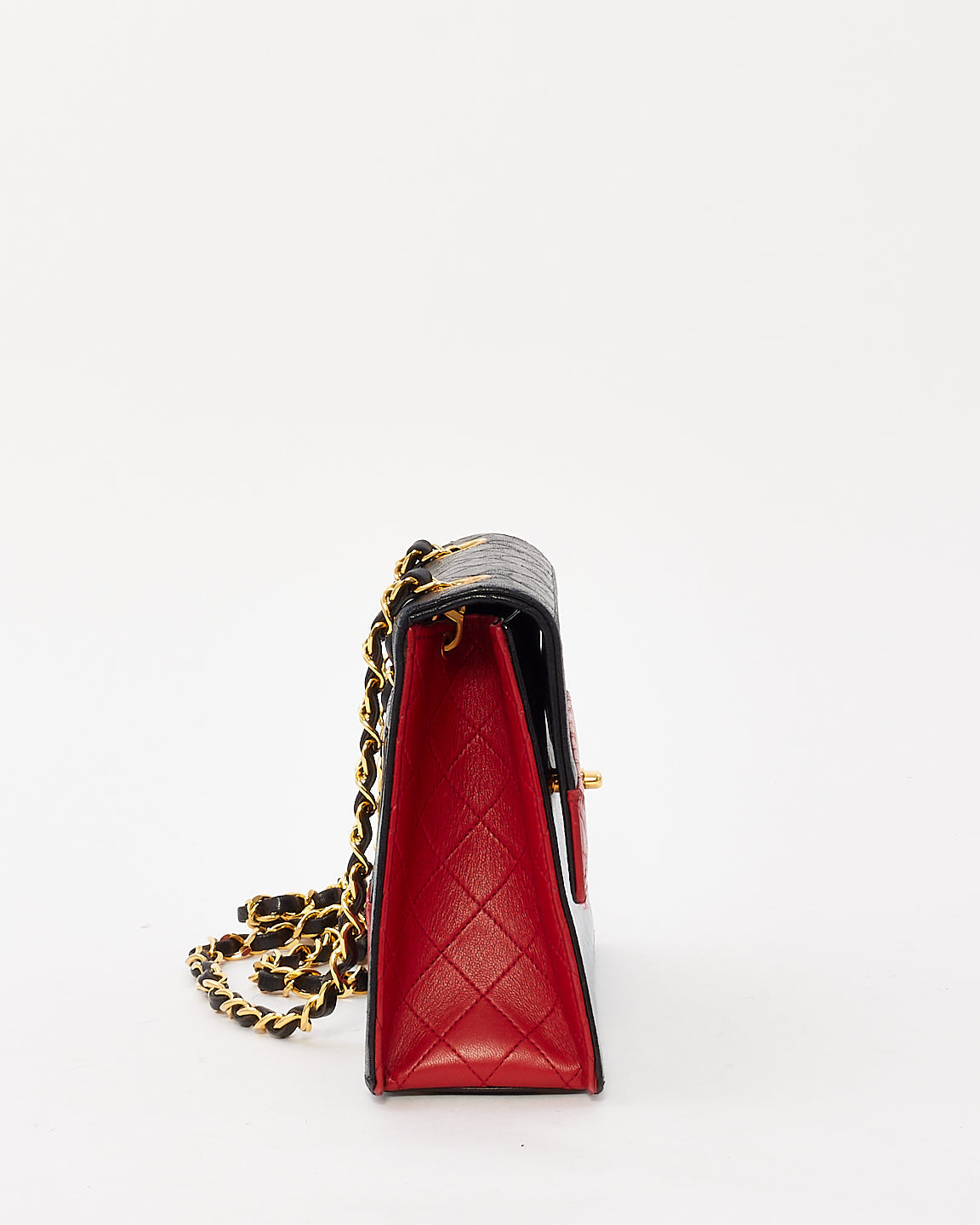 Chanel Vintage Black & Red Leather Trapezoid Shoulder Bag GHW