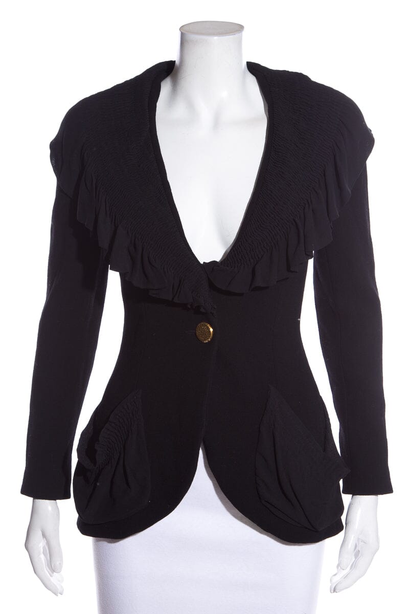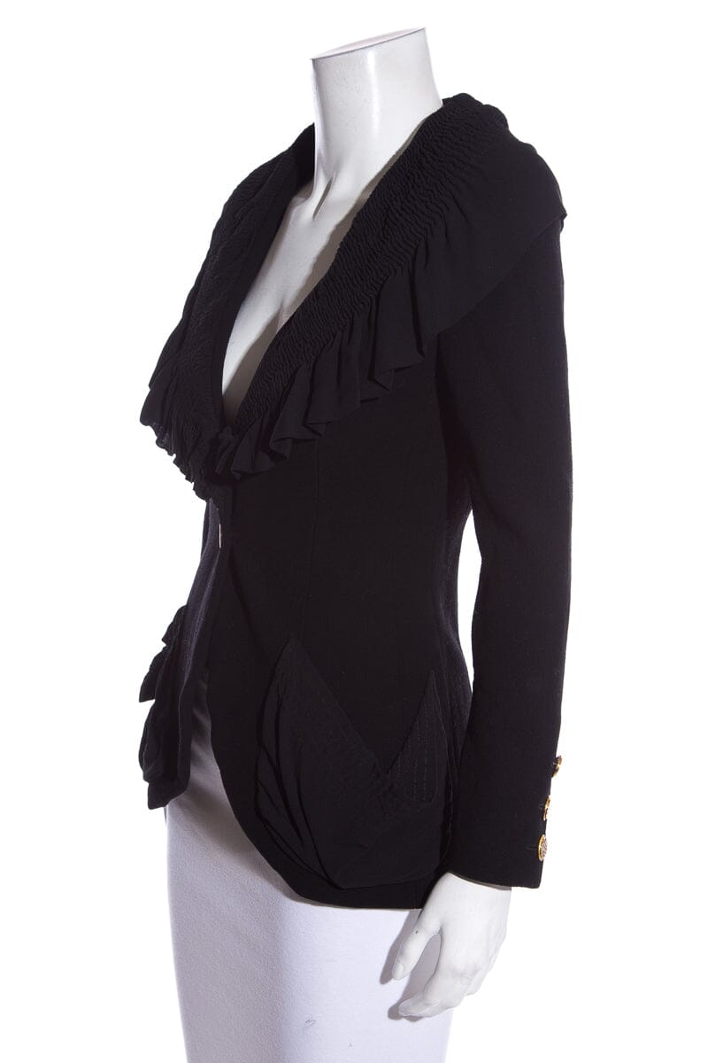 Chanel Vintage Black Ruffled Blazer SZ 34