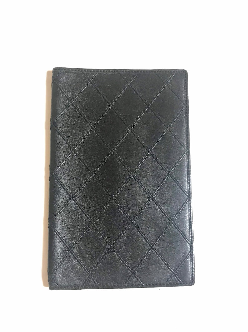 Chanel Vintage black stitched leather book cover, diary cover, checkbook case etc