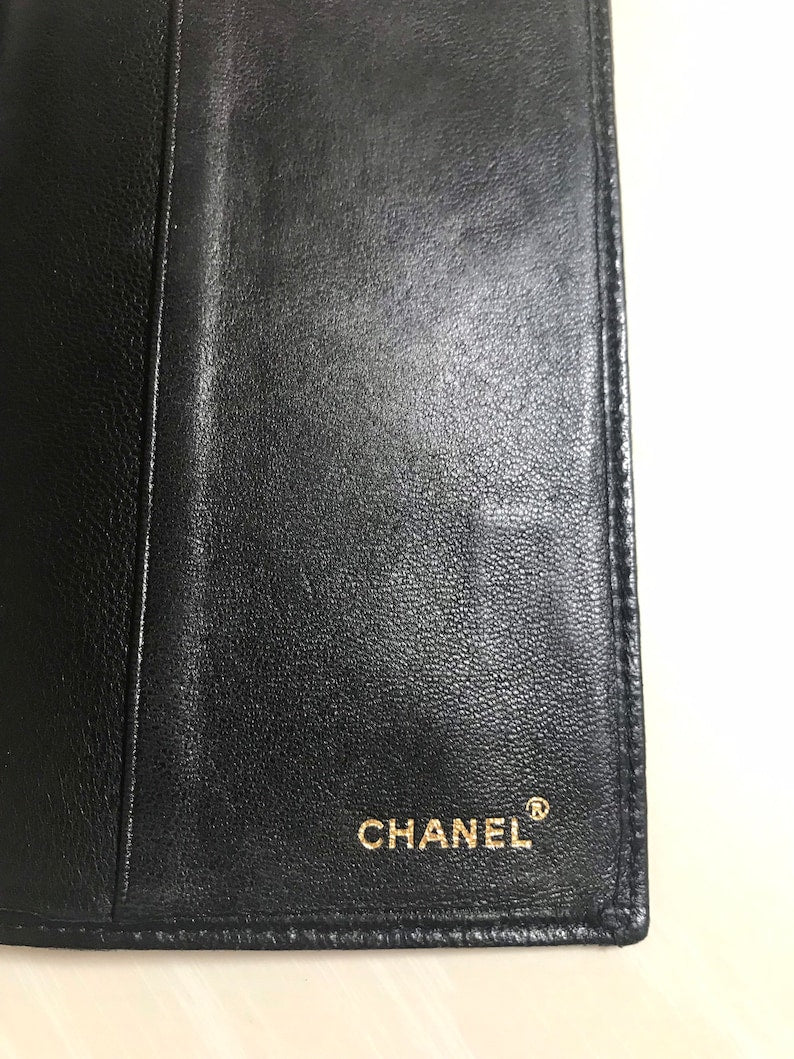 Introducing a Chanel vintage classic and simple design book cover, diary cover, checkbook case in nice and soft black calf leather from late 80's to early 90's.