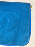 Chanel Vintage blue caviar clutch Bag, iPhone case, large wallet, cosmetic case pouch, mini Bag