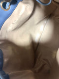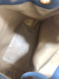 Vintage Chanel blue quilted canvas and leather combo hobo bucket shoulder Bag with golden CC mark balls.