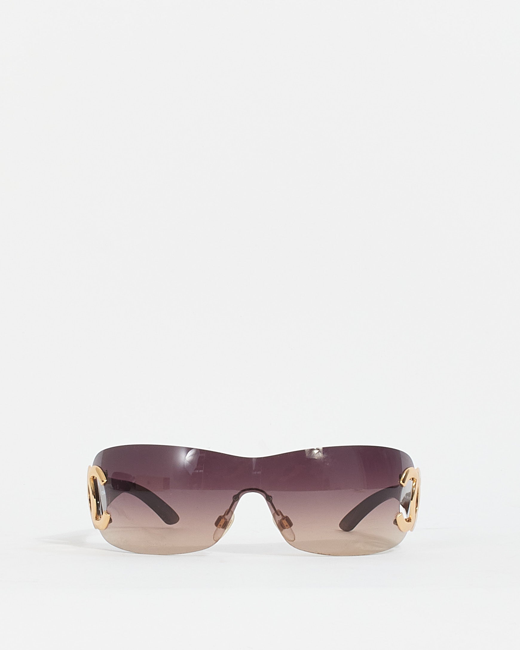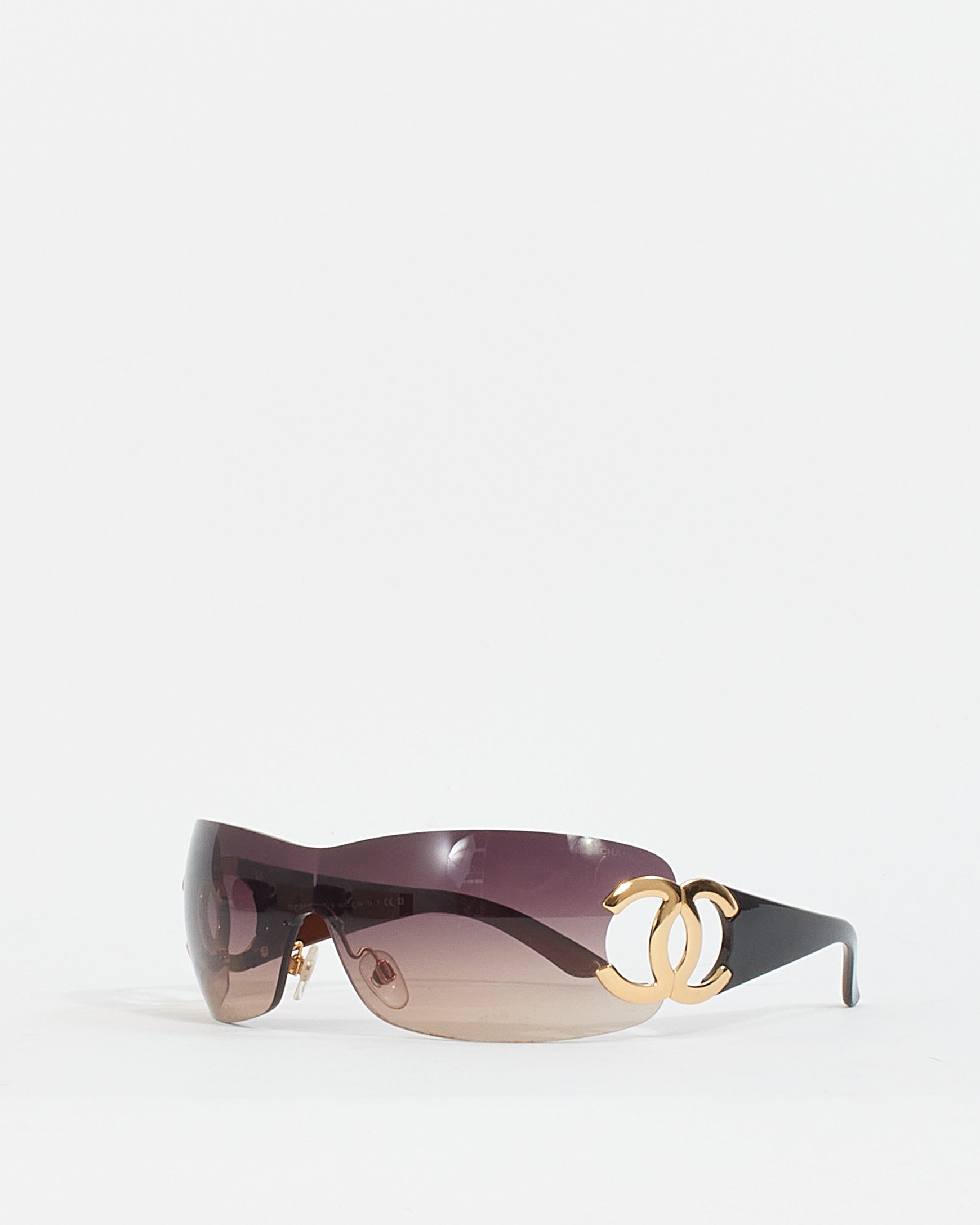 Chanel Vintage Brown 4125 Rimless CC Logo Shield Sunglasses