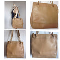 Chanel Vintage brown beige caviar leather chain Tote Bag, shoulder purse with CC stitch marks