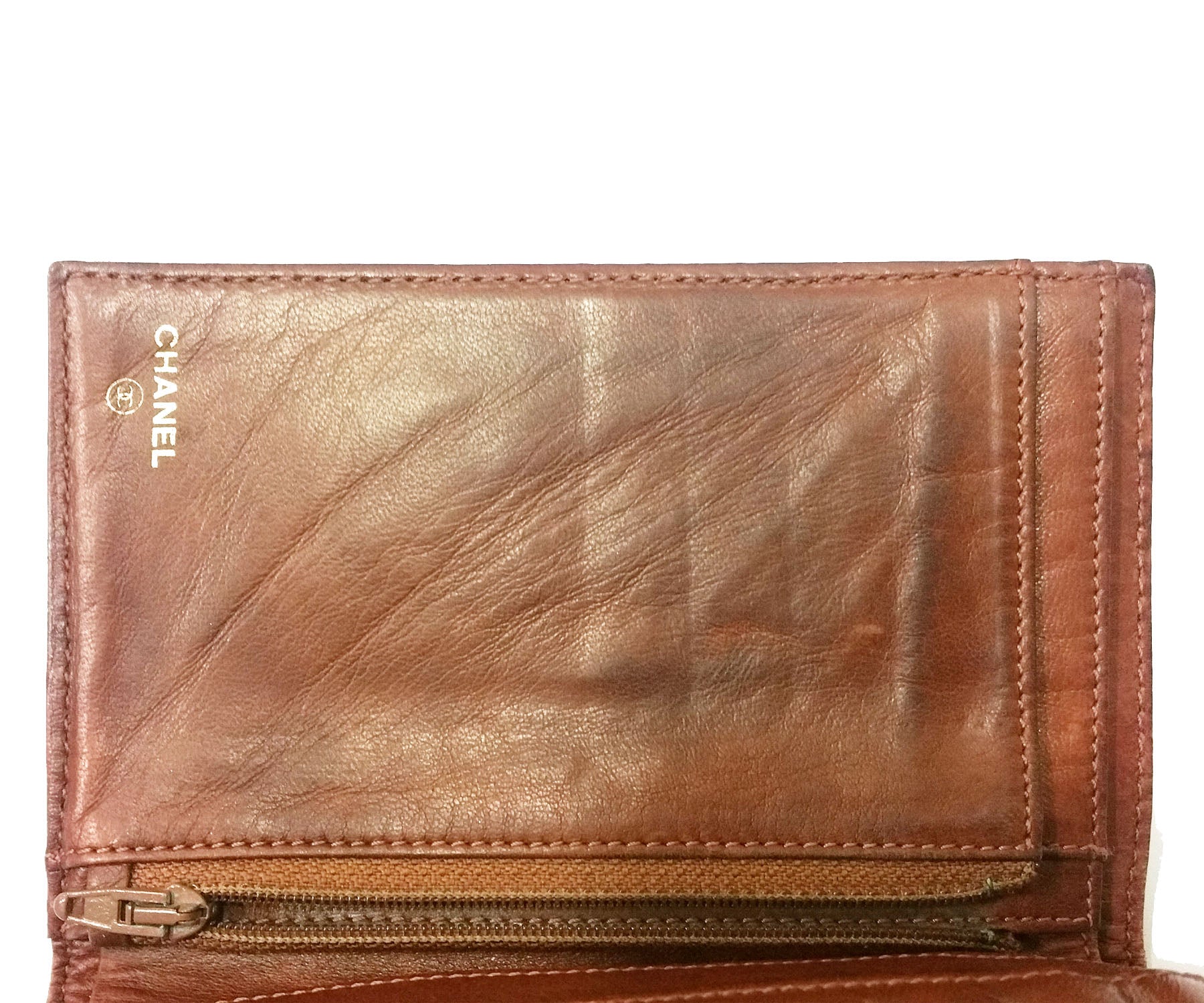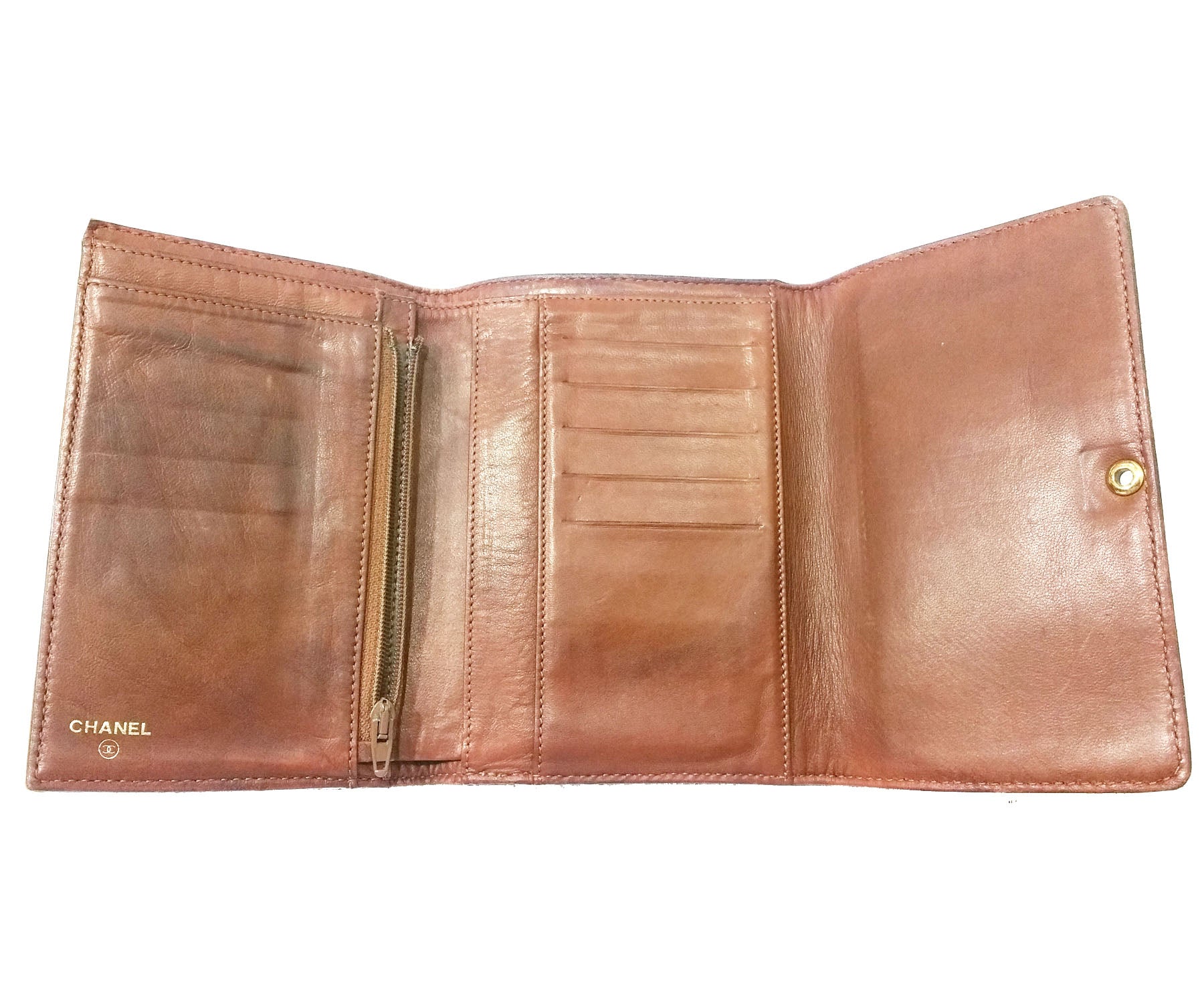 Chanel Vintage Brown Caviar TriFold Wallet.