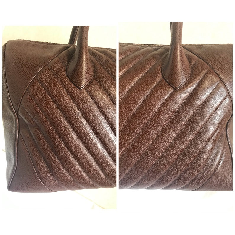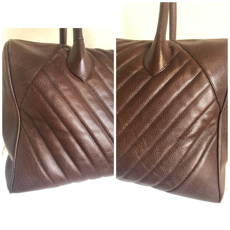 This is a vintage caviarskin handBag in dark brown from 90's Chanel.
