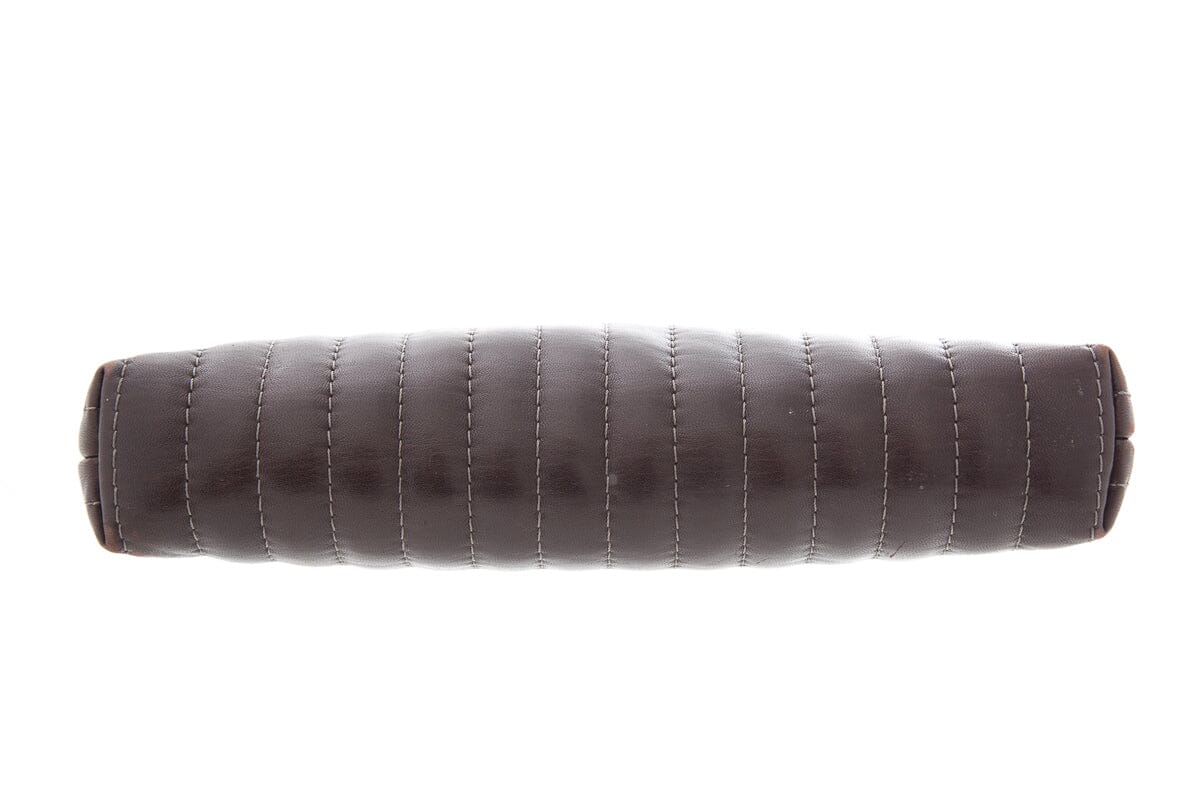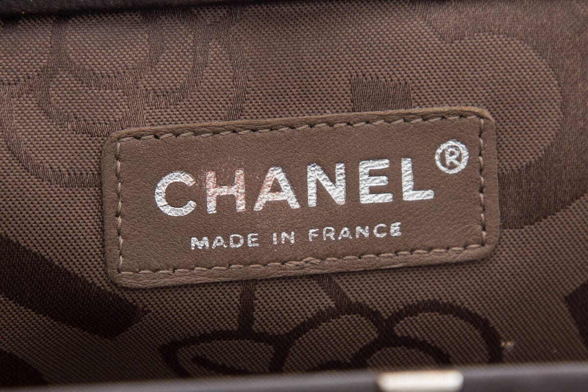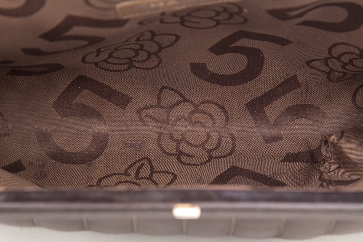 Chanel Vintage Brown Clutch. This item is vintage with slight wear to leather on corners, creasing, and marks on lining.