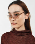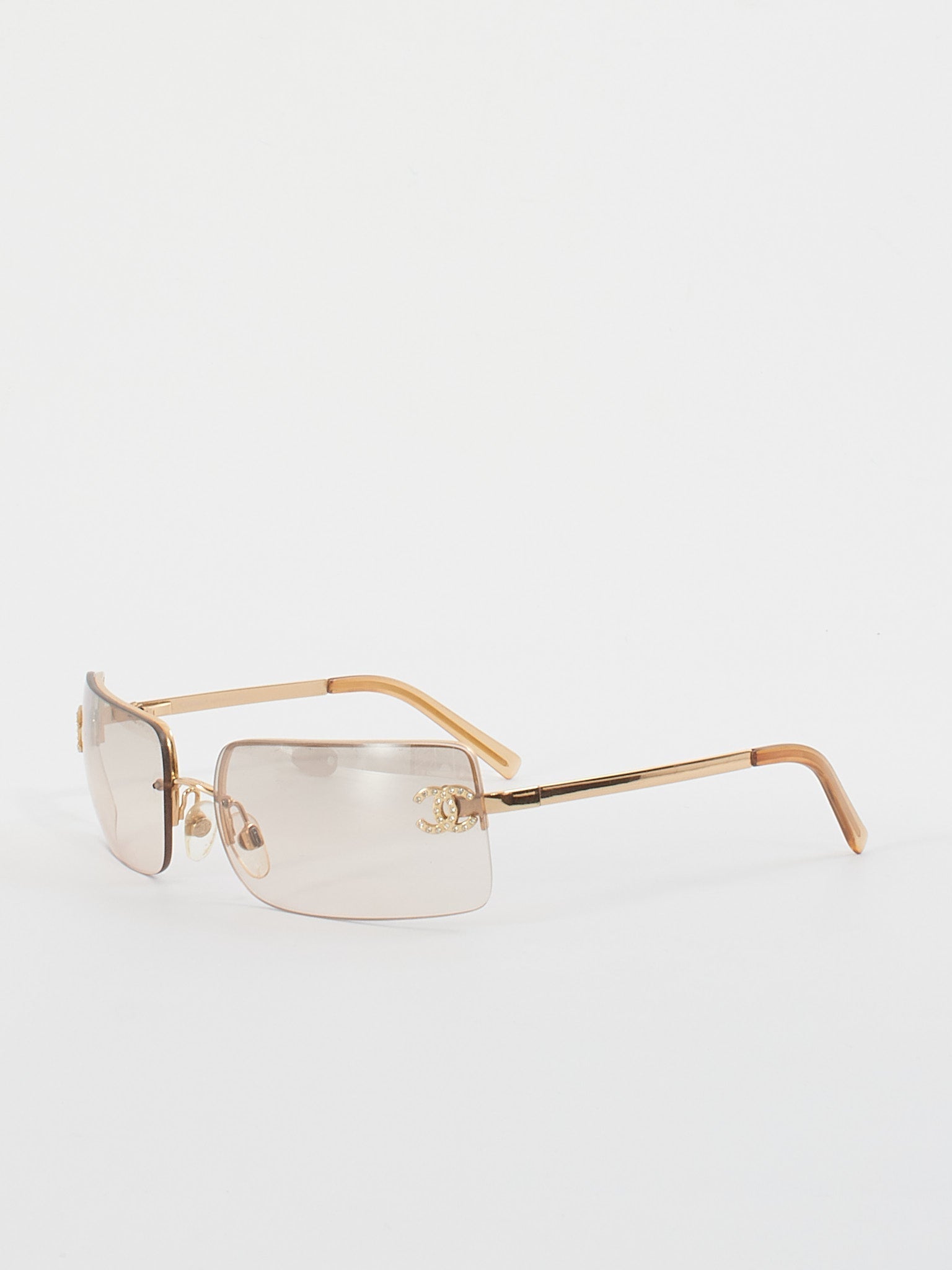 Chanel Vintage Brown Rimless Square Rhinestone Logo Sunglasses - 4104 -B