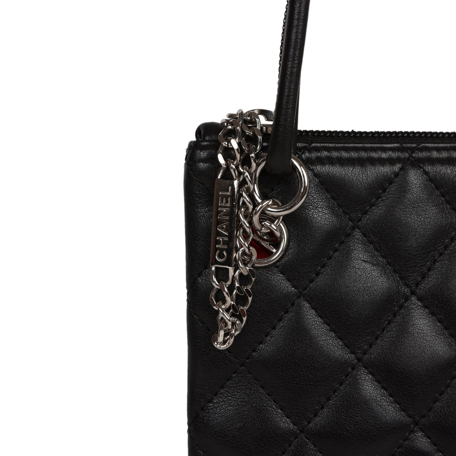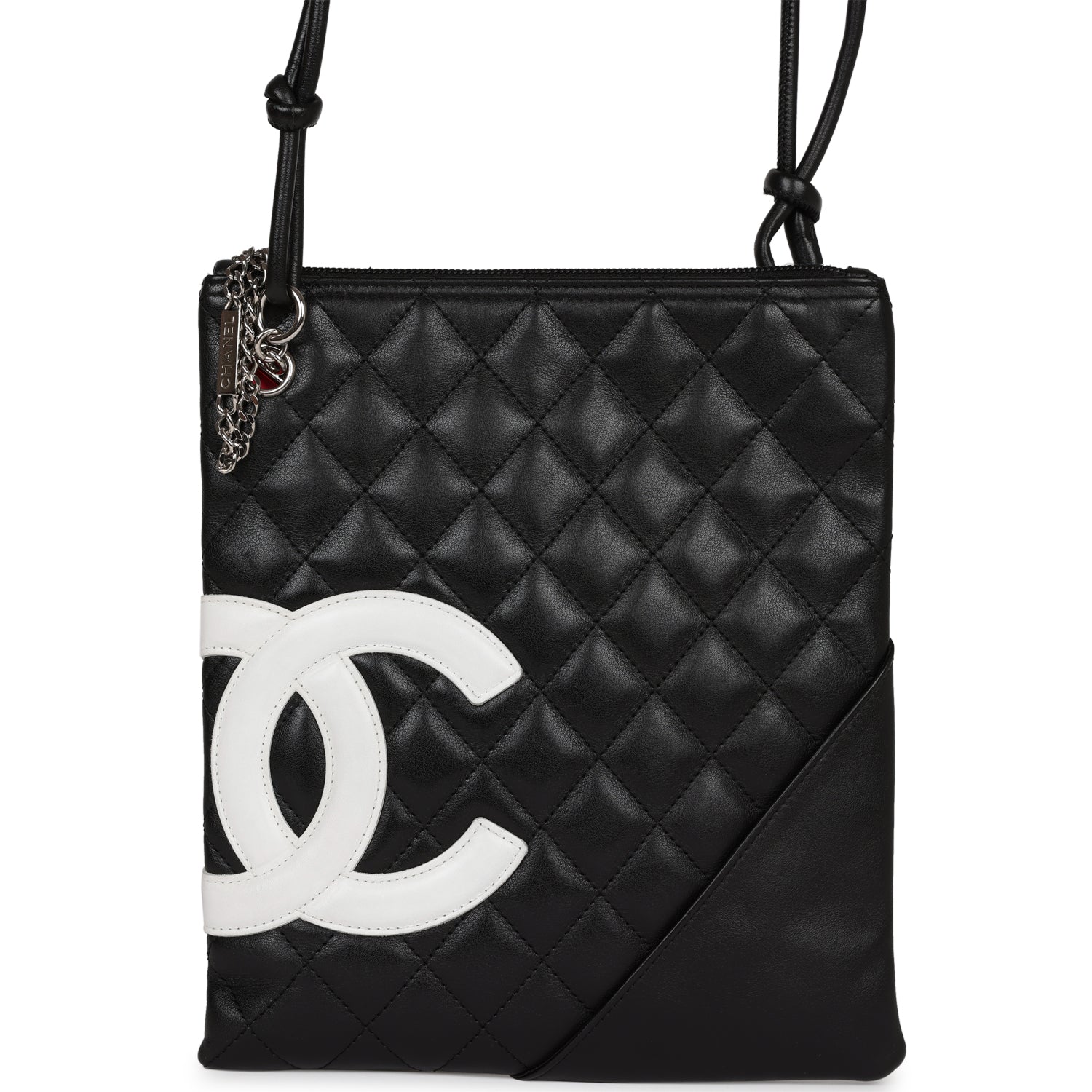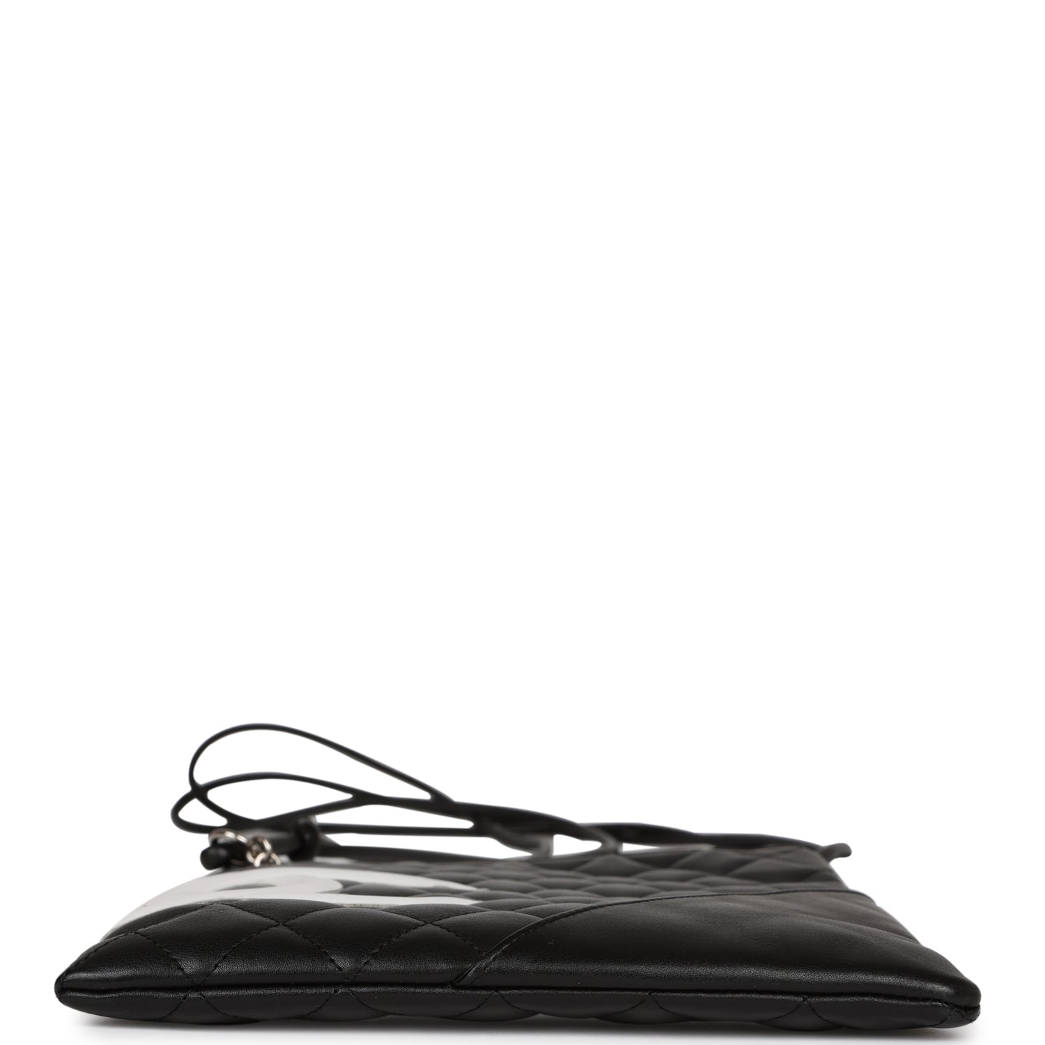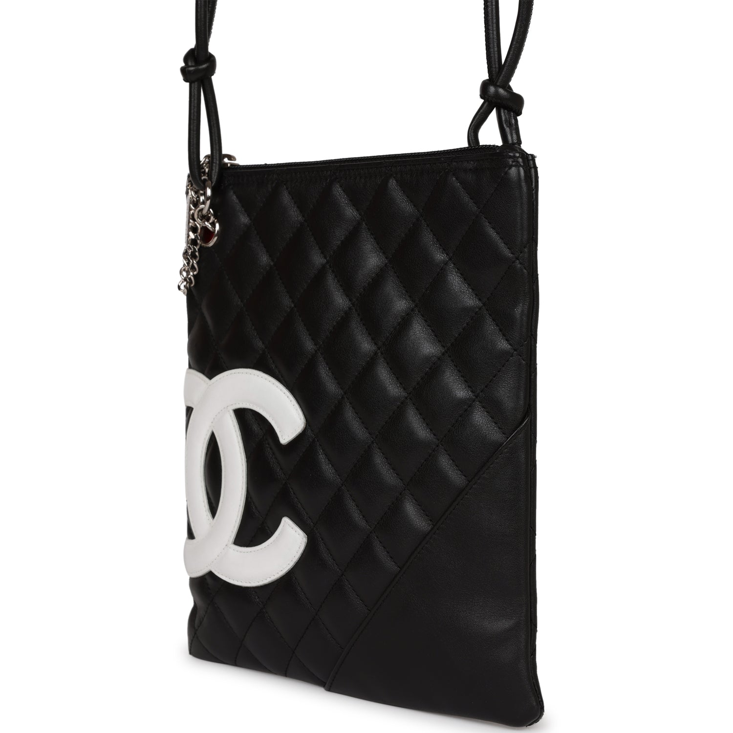 Vintage Chanel Cambon Flat Messenger Black and White Lambskin Silver Hardware