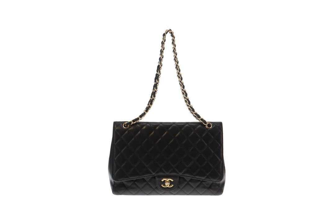 Catch eyes and hearts with the Chanel Vintage Caviar Single Flap Maxi Classic. This iconic bag features luxurious caviar leather and a single flap closure, making it a timeless addition to any wardrobe. Elevate your style with this classic, sophisticated, and oh-so-chic piece.