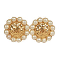 Vintage Chanel 24K Gold Plated CC Logo Pearl Circle Earrings