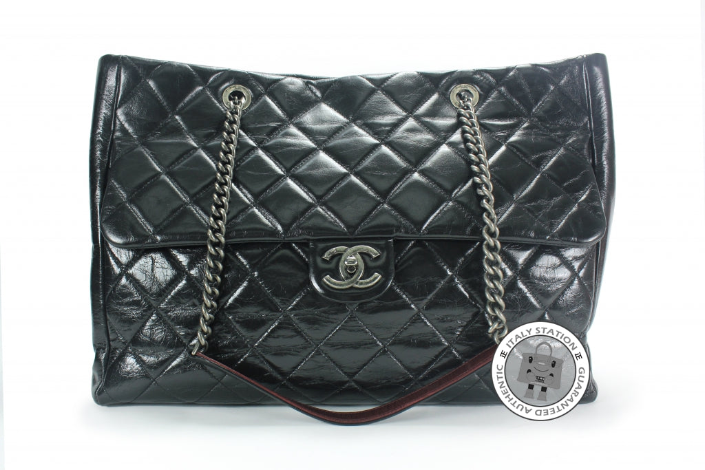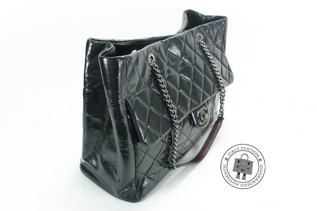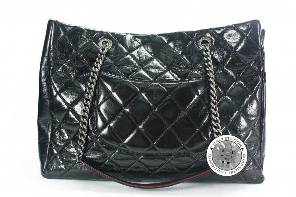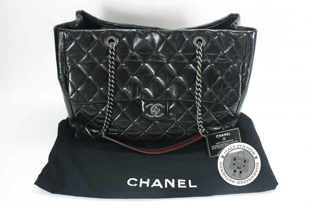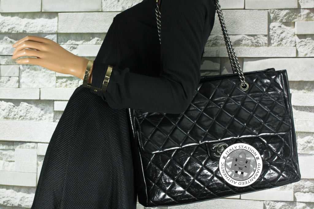 Chanel Vintage CC Shopping Black Leather Shoulder Bags Sbhw