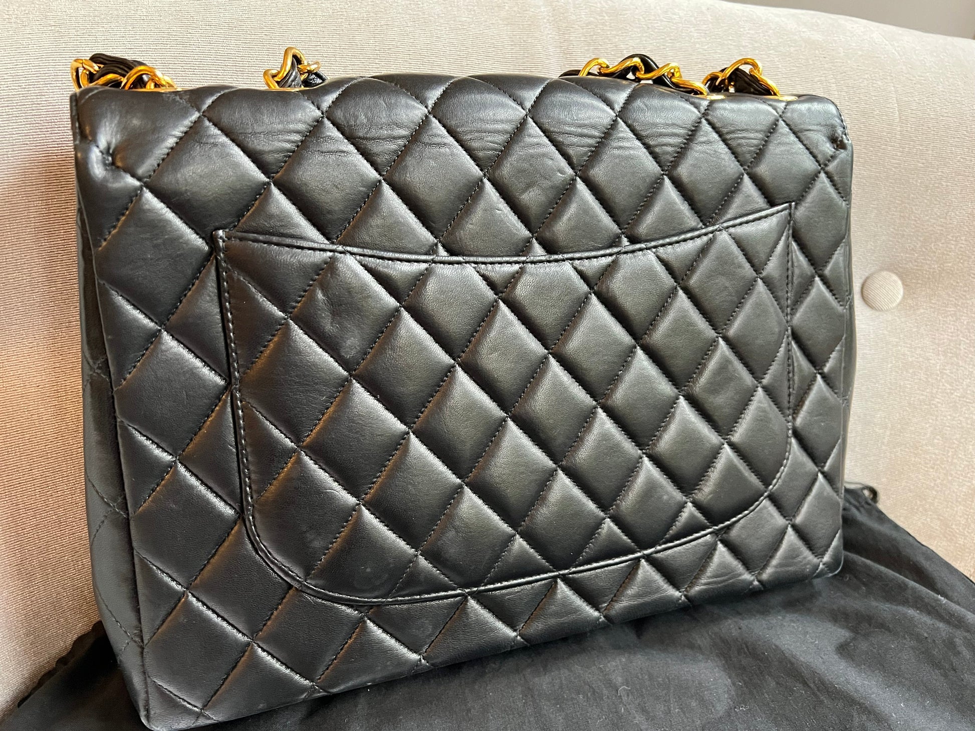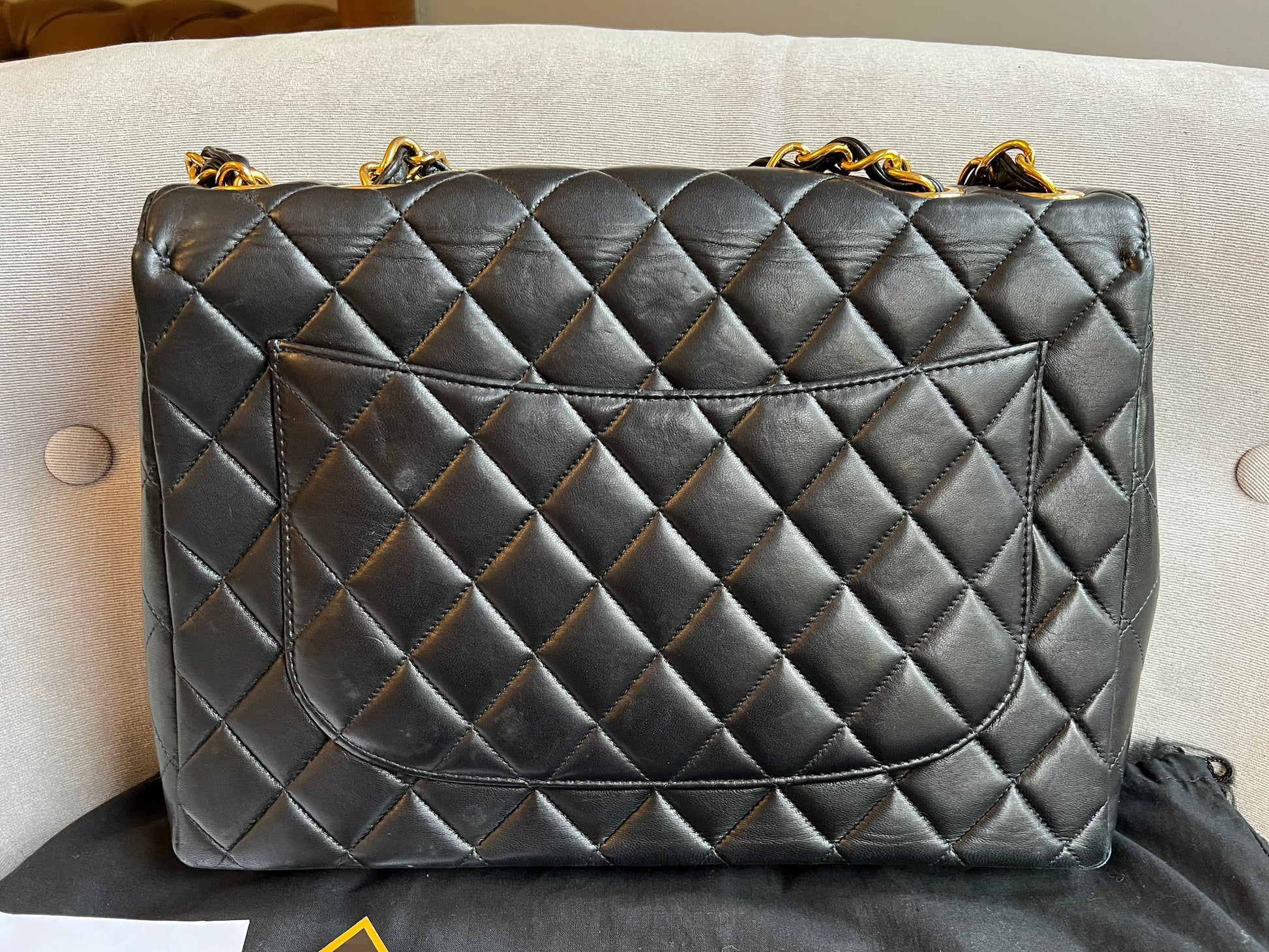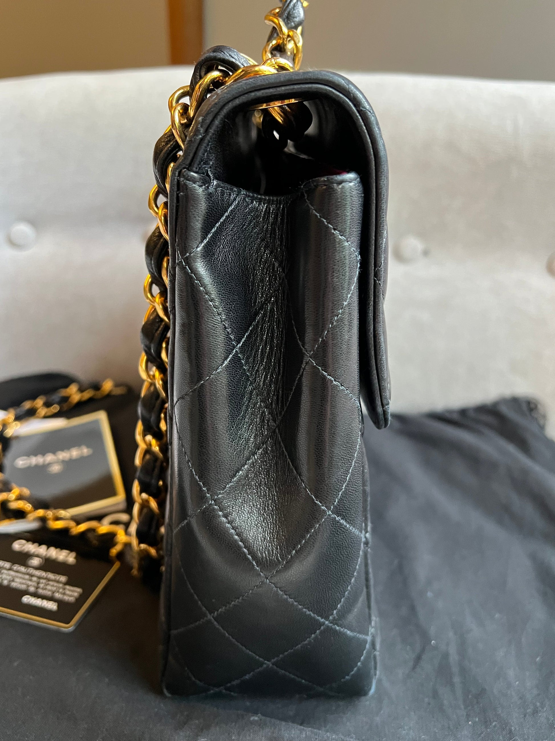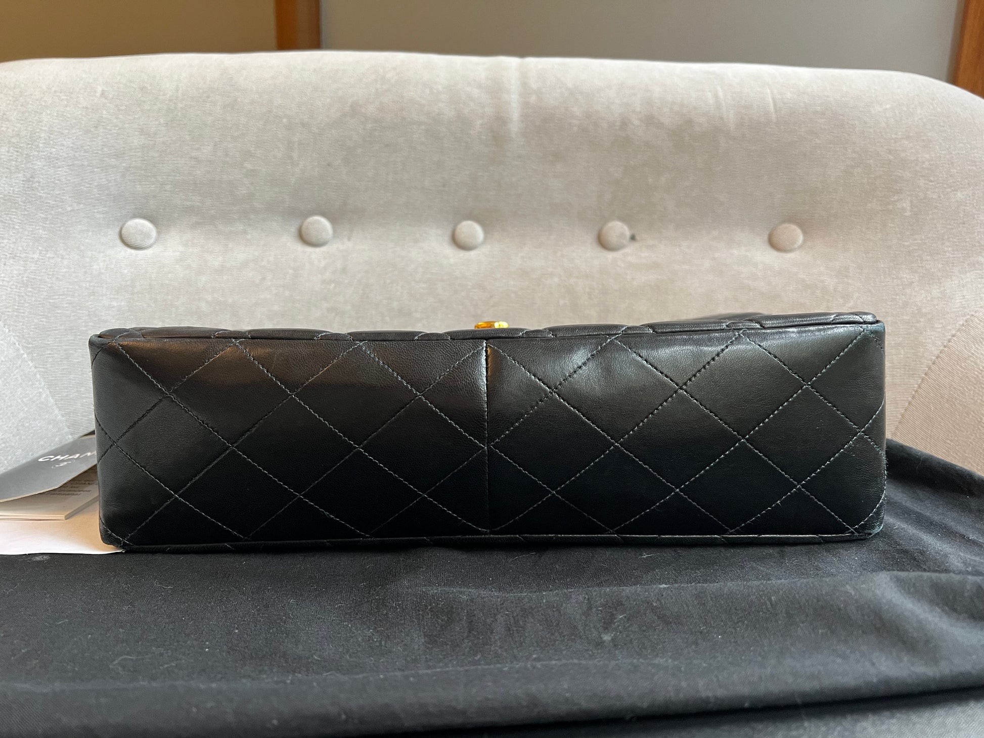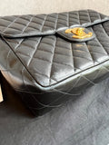 Chanel Vintage Classic Quilted Single Flap Jumbo in Black Lambskin with 24k Gold Hardware