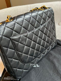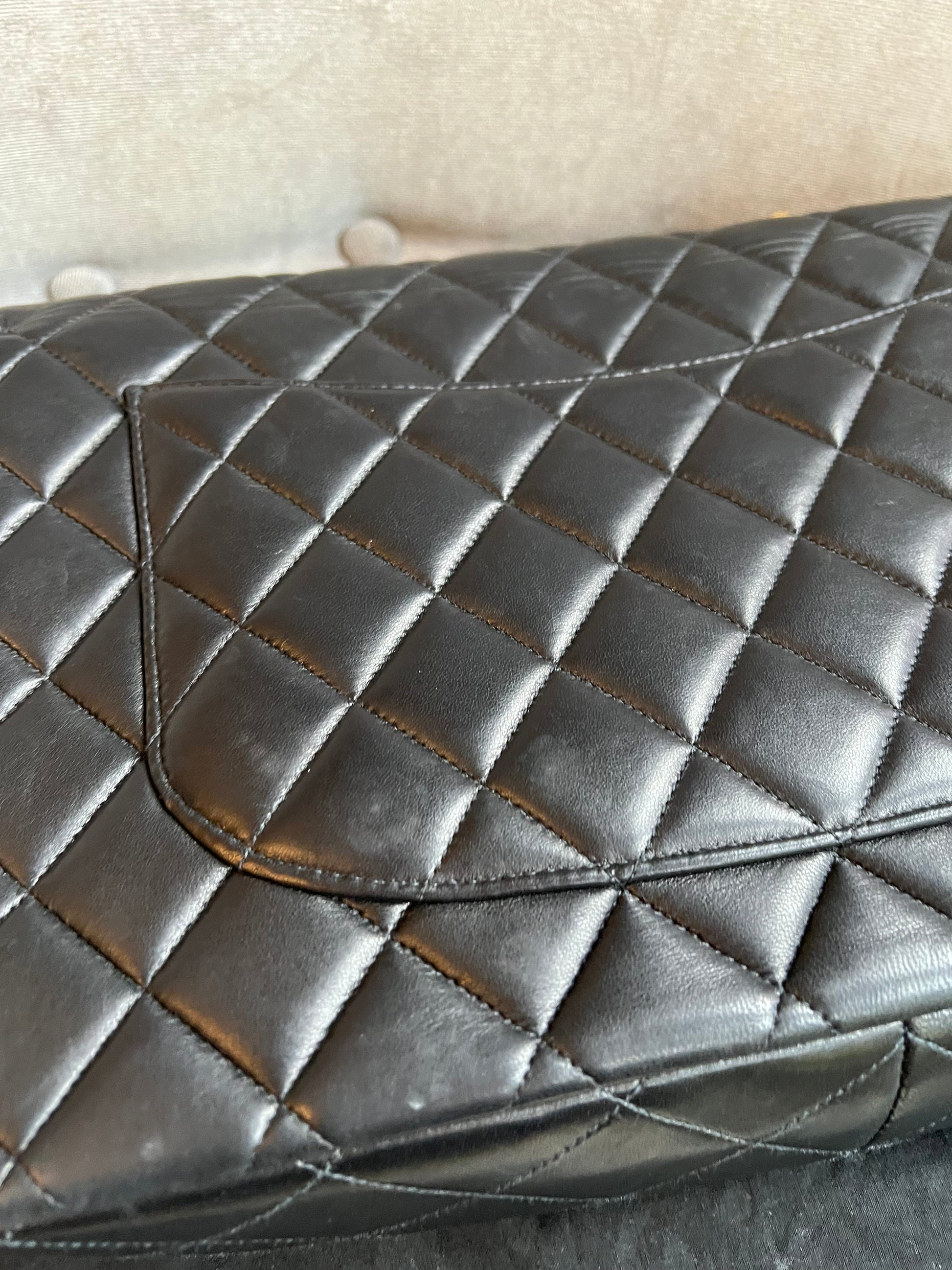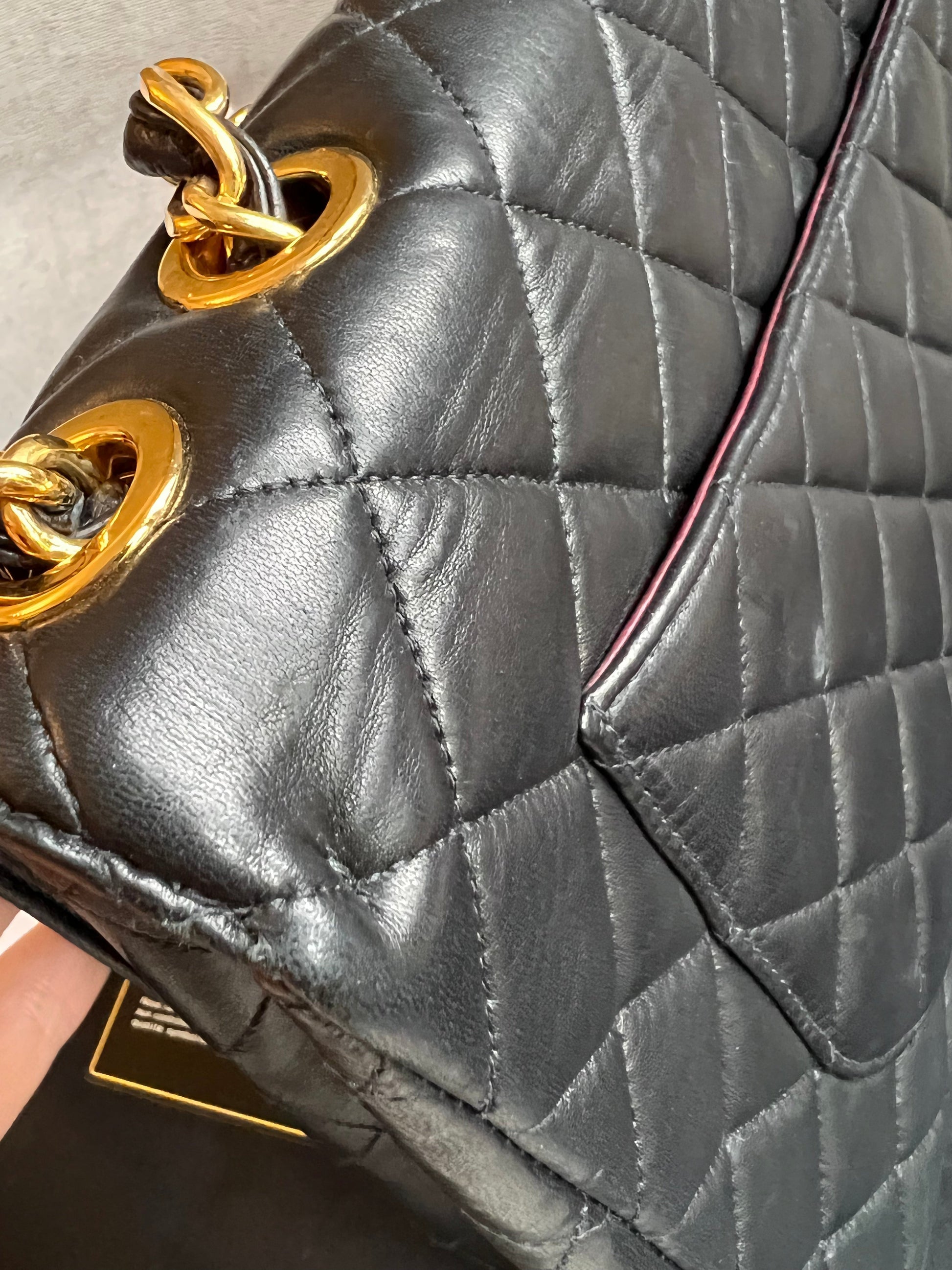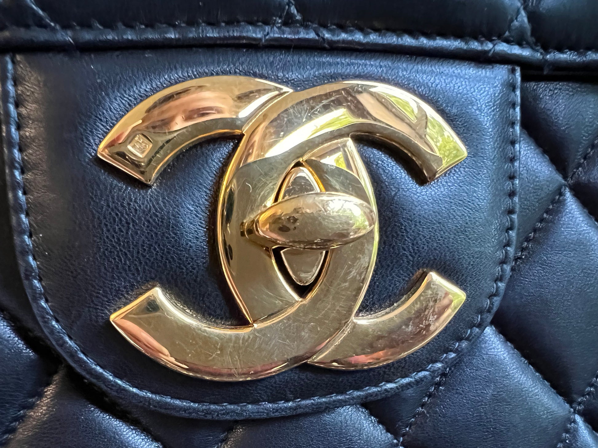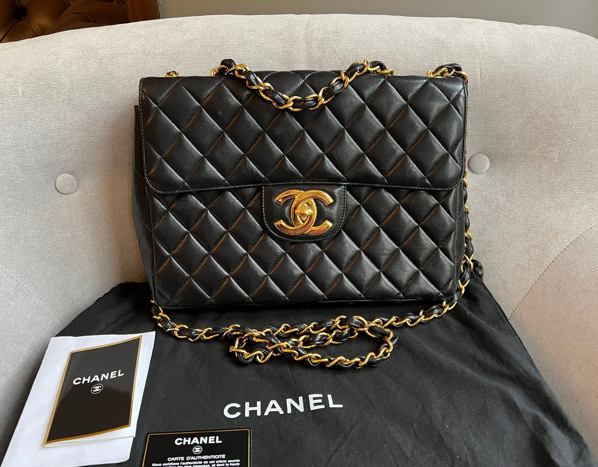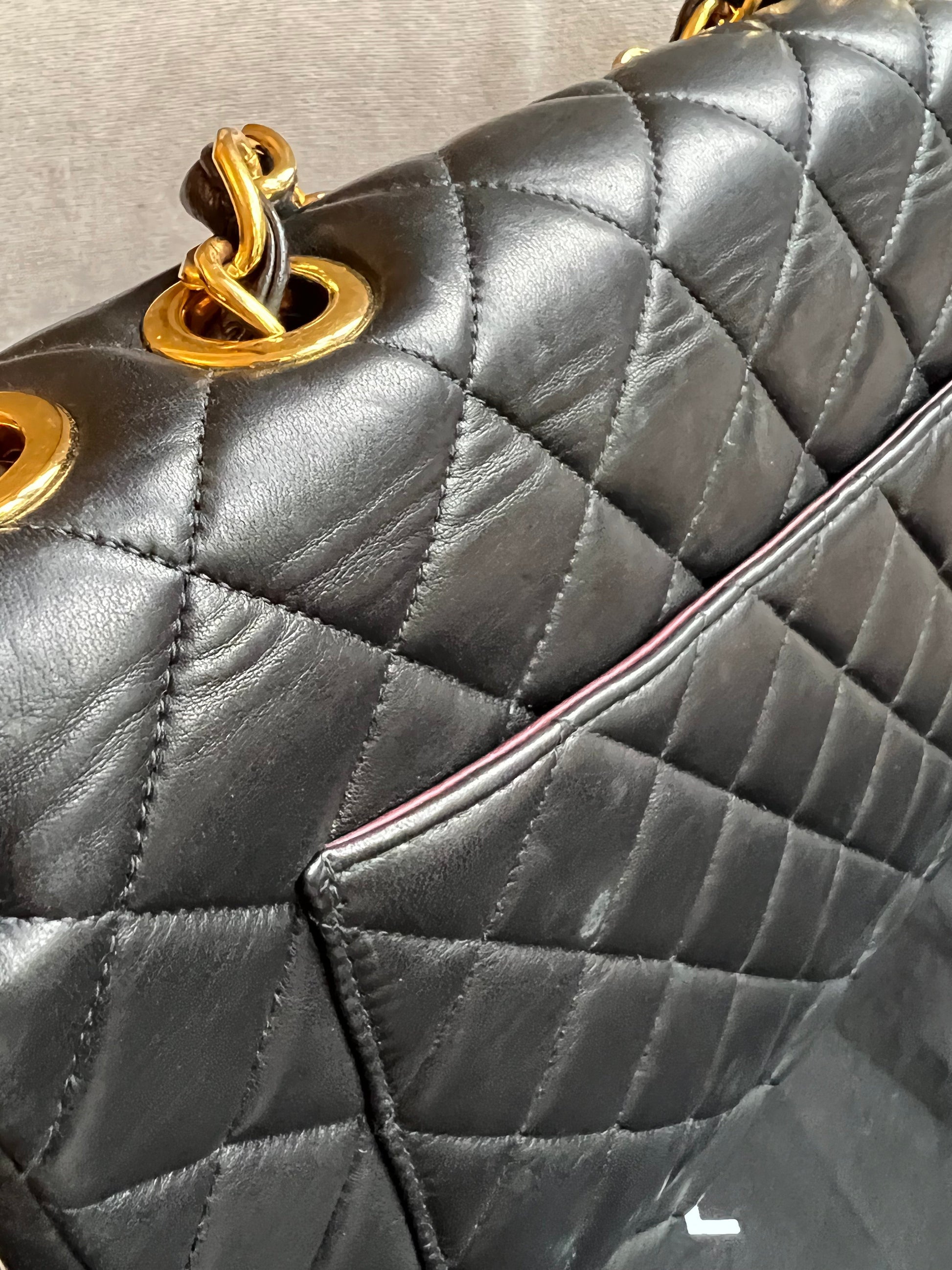 Chanel Vintage Classic Quilted Single Flap Jumbo in Black Lambskin with 24k Gold Hardware