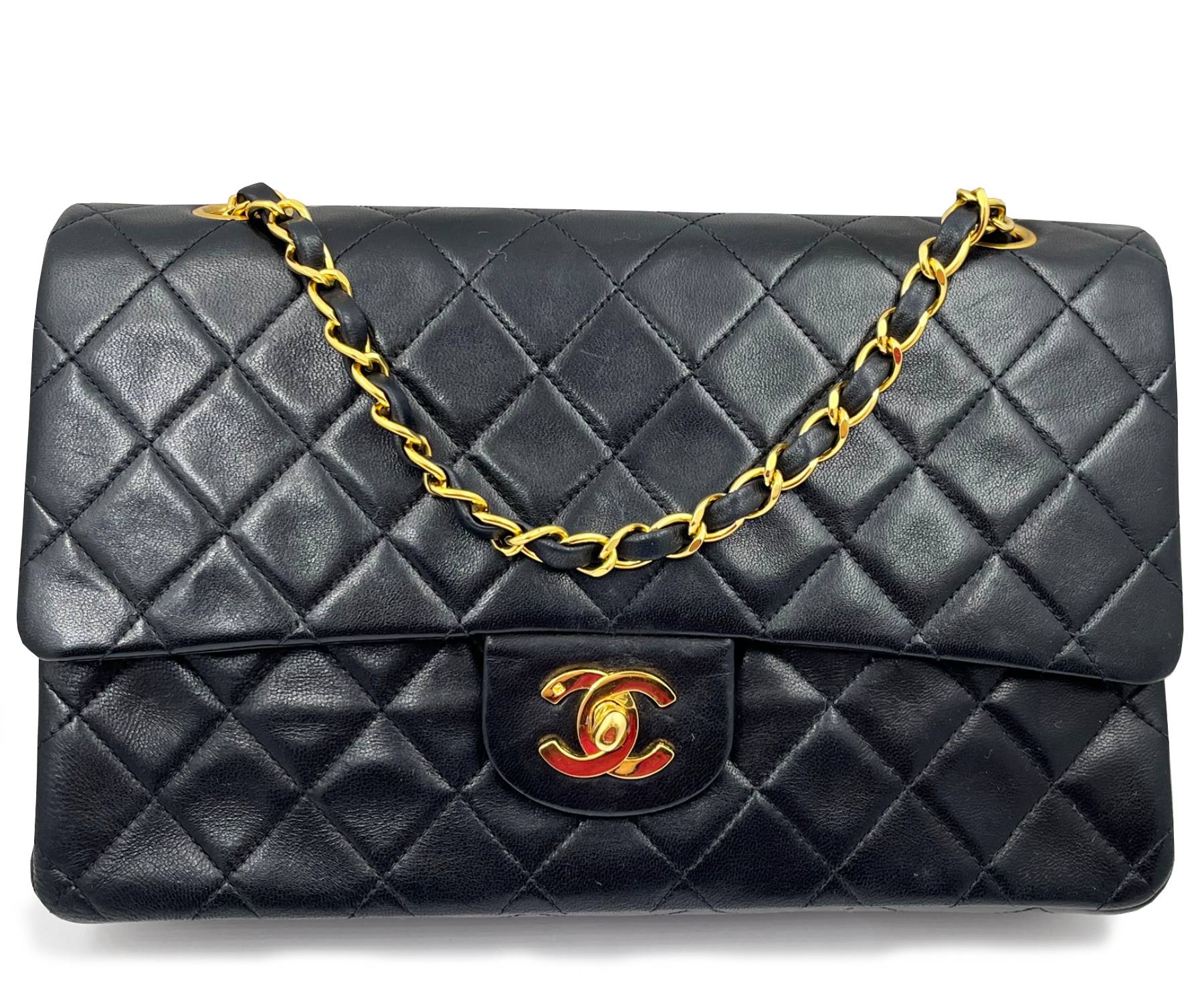 Chanel Vintage Classic Timeless Double Flap Lambskin 10" Shoulder Bag.
