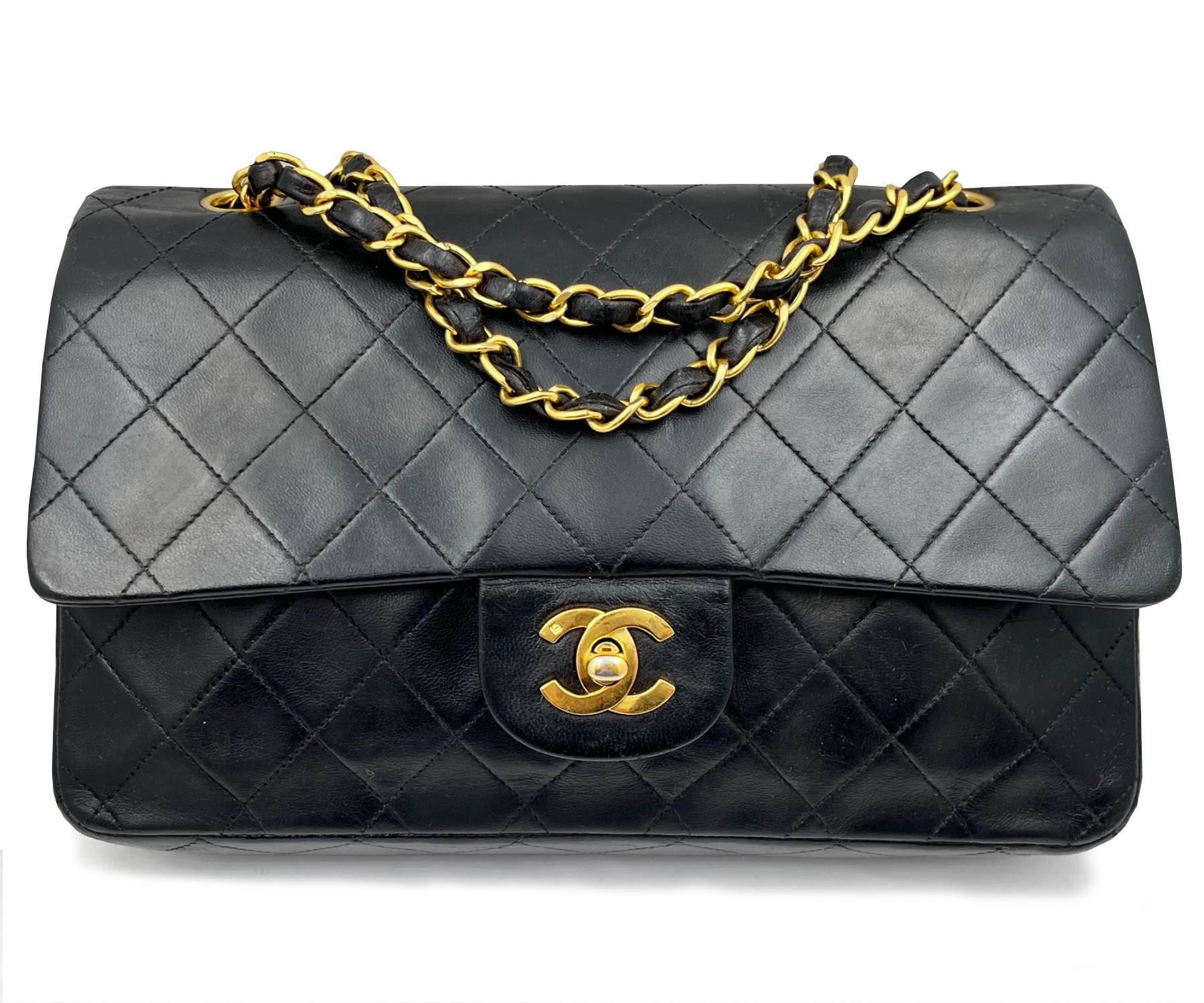 Chanel Vintage Classic Timeless Double Flap Lambskin 10" Shoulder Bag.
