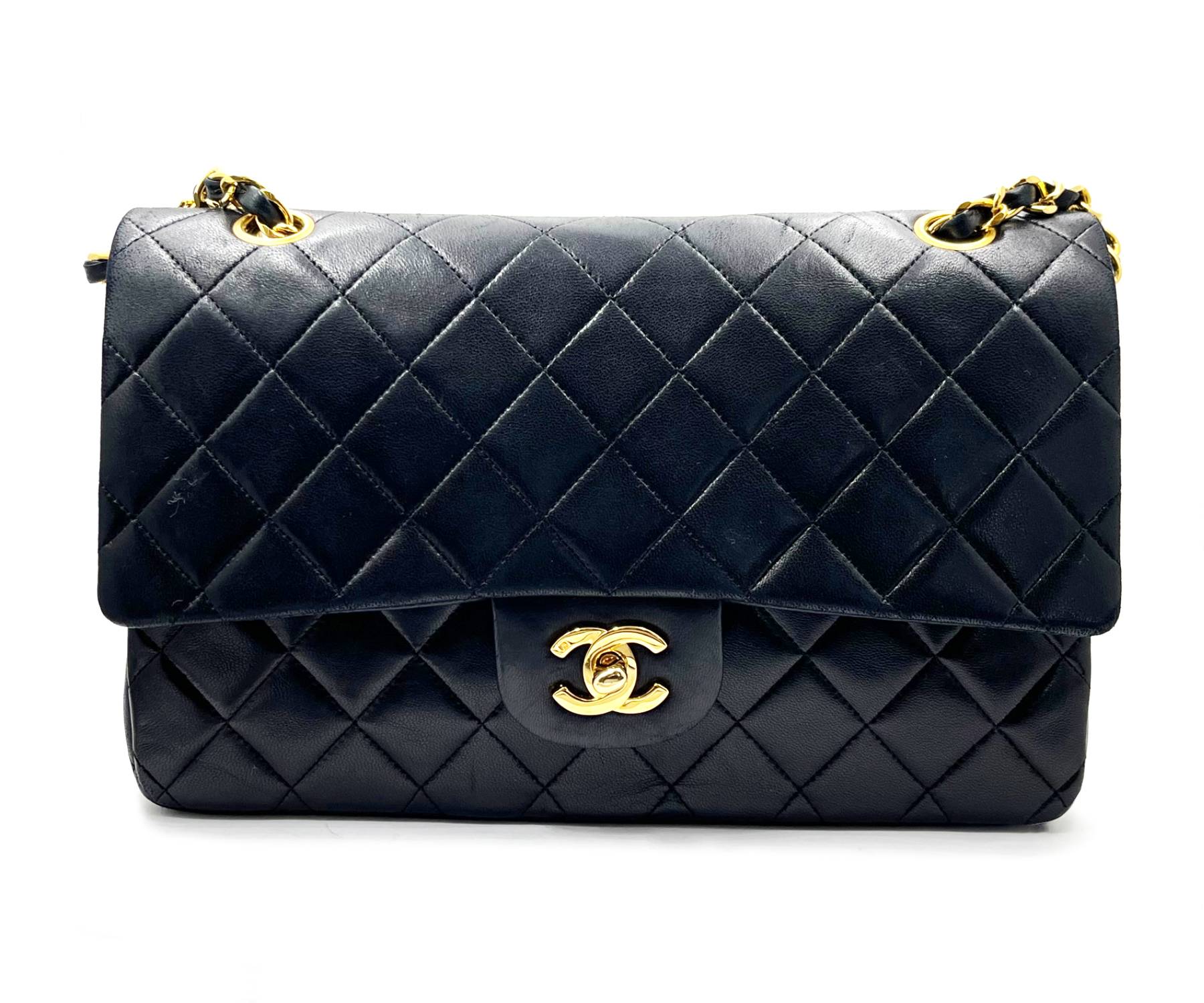 CHANEL Vintage Classic Timeless Double Flap Lambskin 10" Shoulder Bag