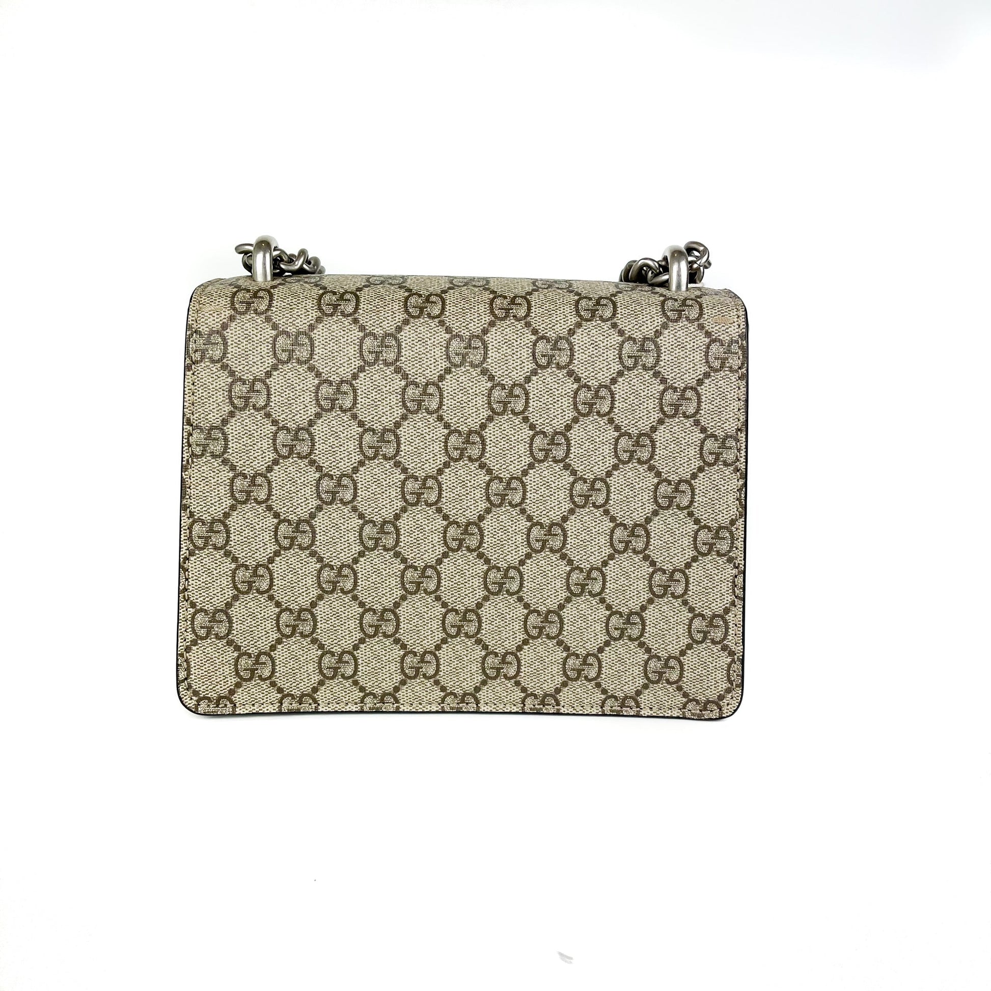 Overall: 8 of 10 - The outside is in excellent condition with minimal signs of use only. Slight scratches. The inside is also excellent and very clean with very slight scratches. No stickiness or peeling. All chains and hardware are shiny and excellent. Highly recommended!