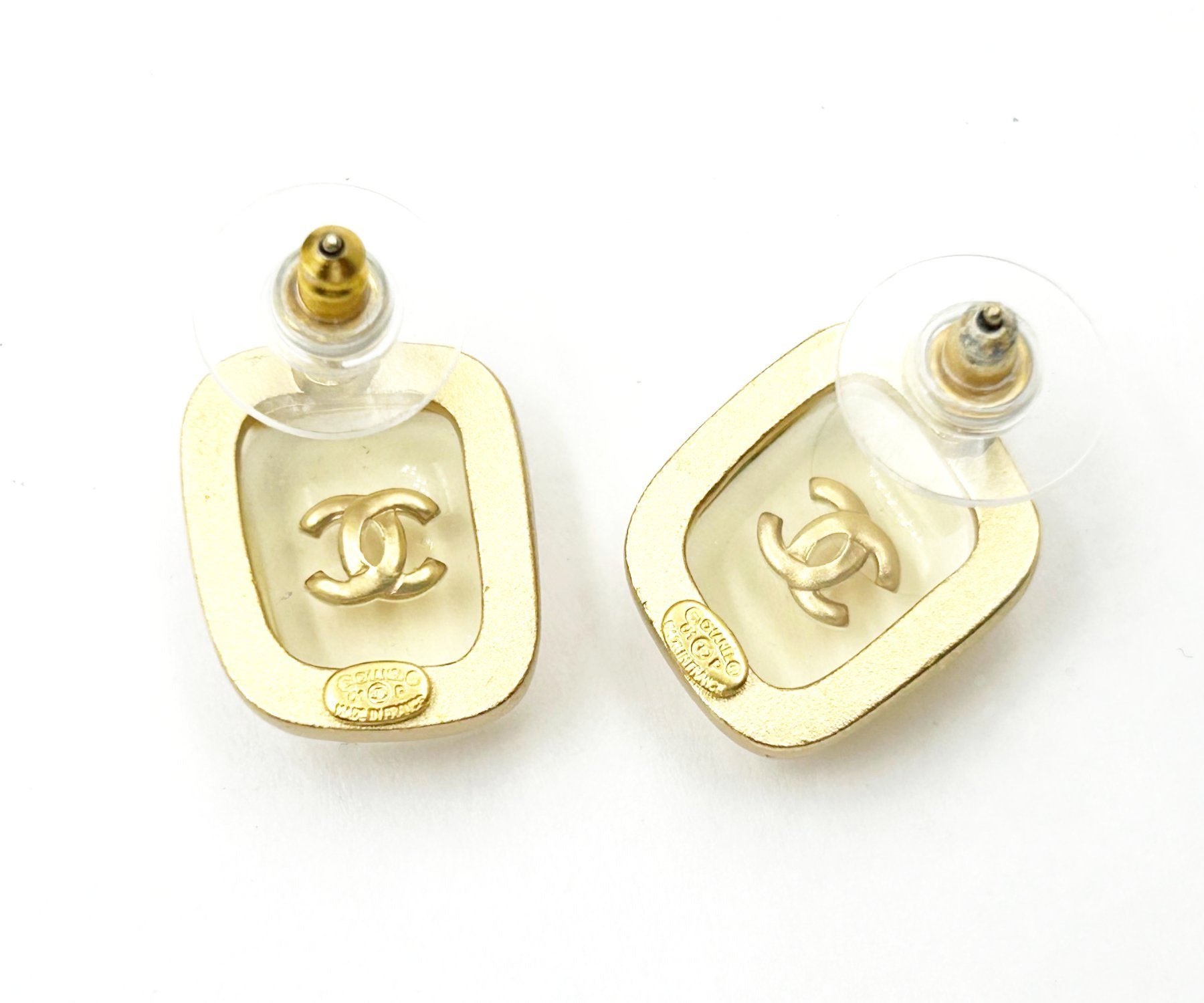 Chanel Vintage Gold CC Clear Rectangle Stud Piercing Earrings.
