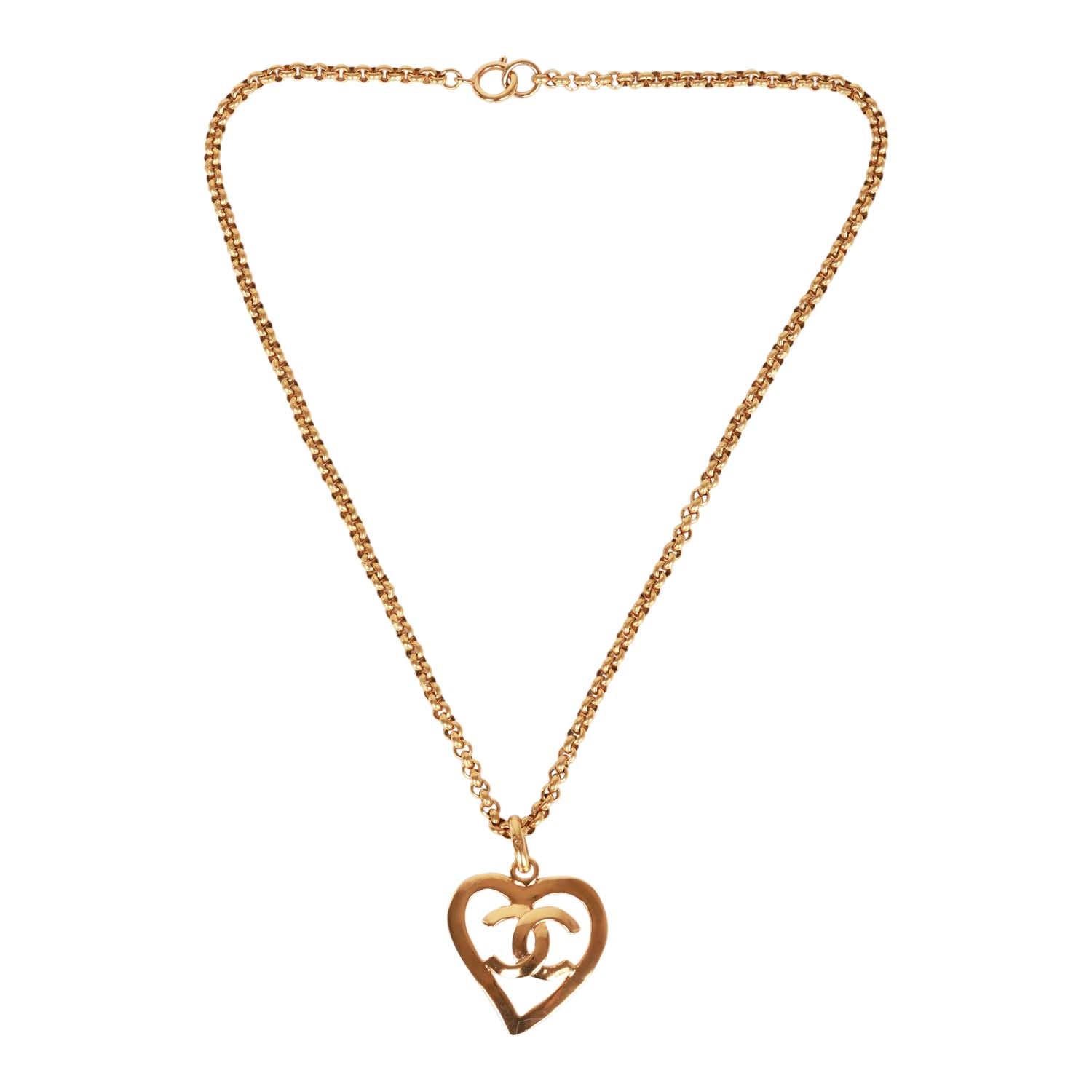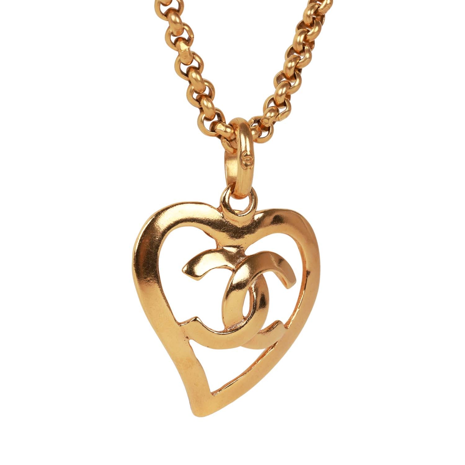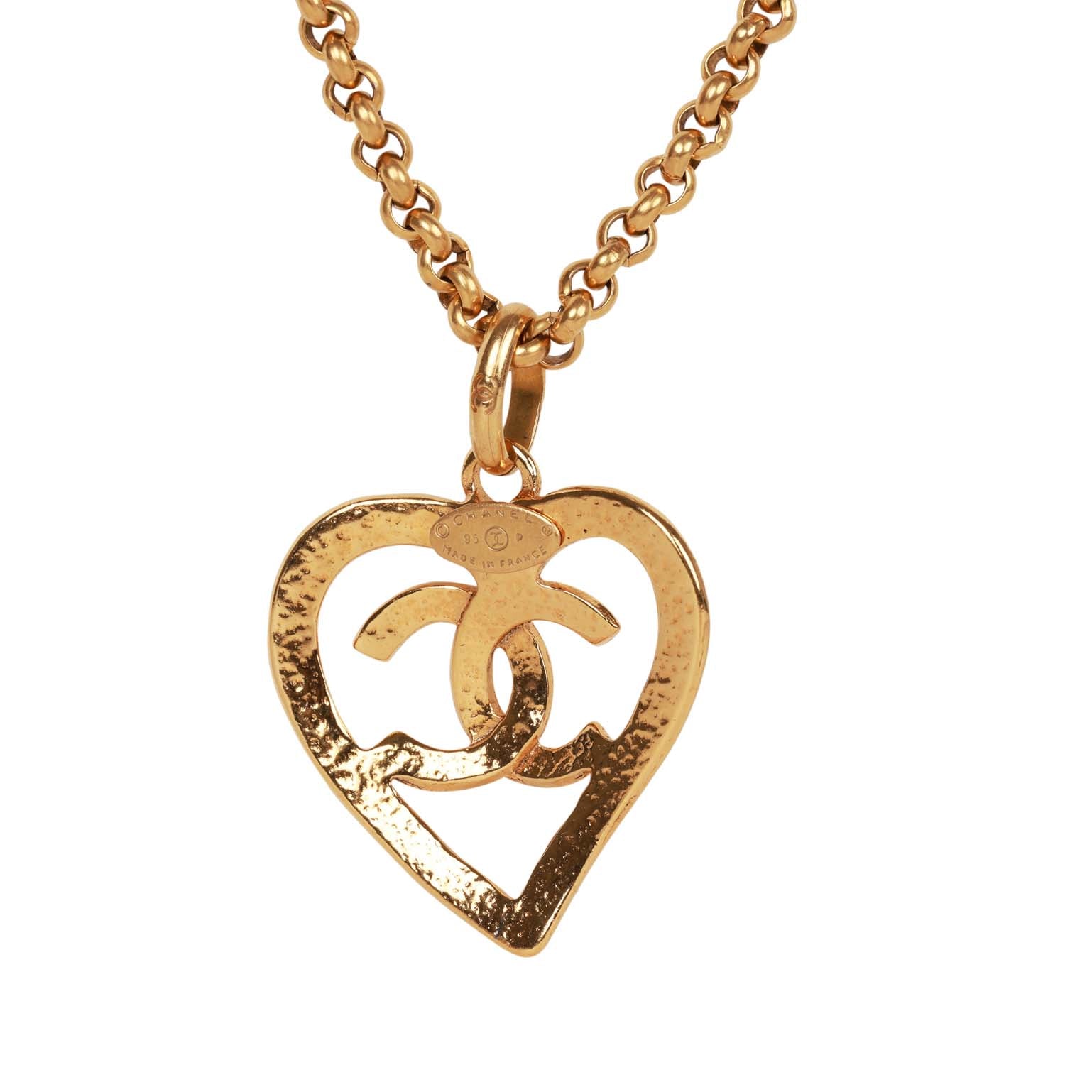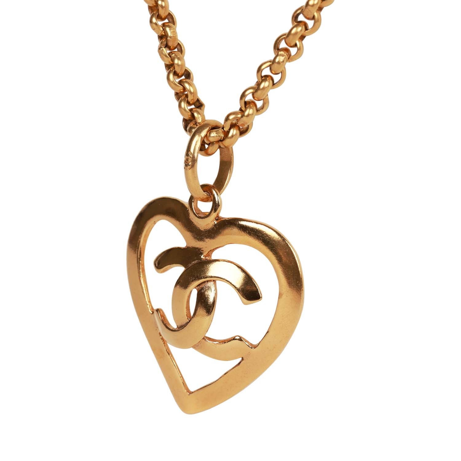 Vintage Chanel Gold CC Heart Pendant Necklace
