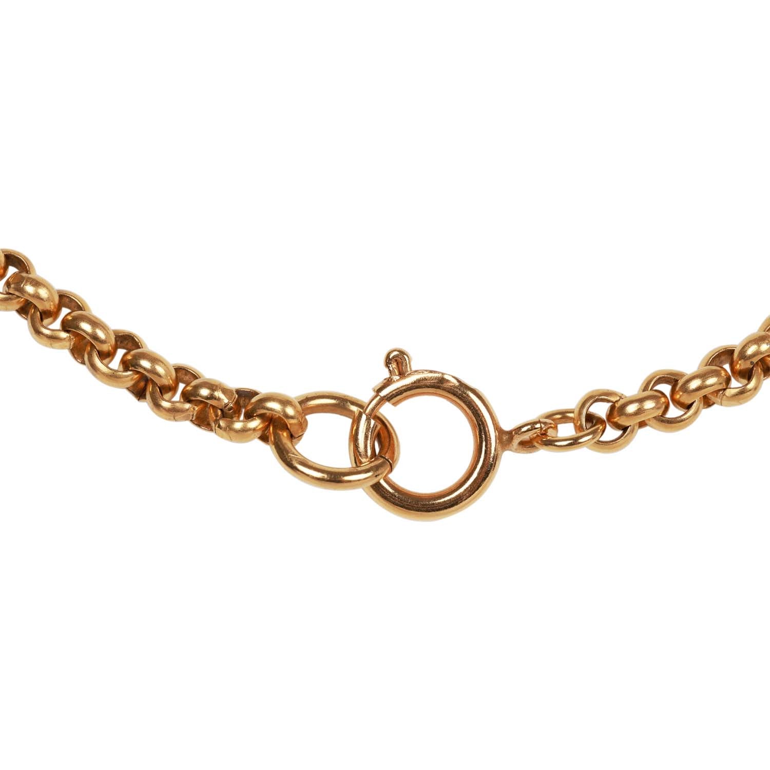 This 95P Chanel Vintage Gold Necklace features a statement heart interlocking CC logo pendant, a thick rolo chain, and a spring ring closure.