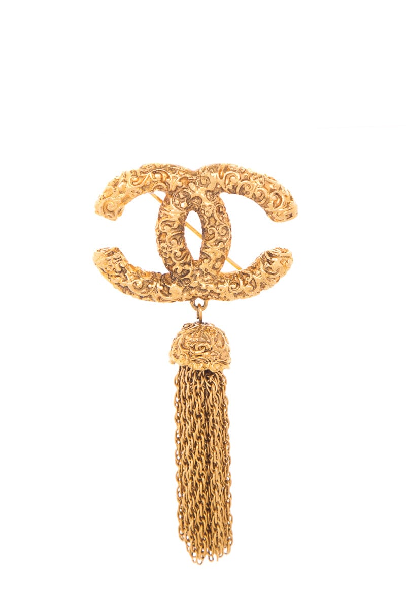 Chanel Gold CC Tassel Brooch Pin 93A. This item is vintage and in good condition.