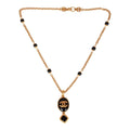 This 96A Chanel vintage 24K gold plated necklace features an oval pendant with embossed CC logo, a chain link with six black beads, and a hook clasp.