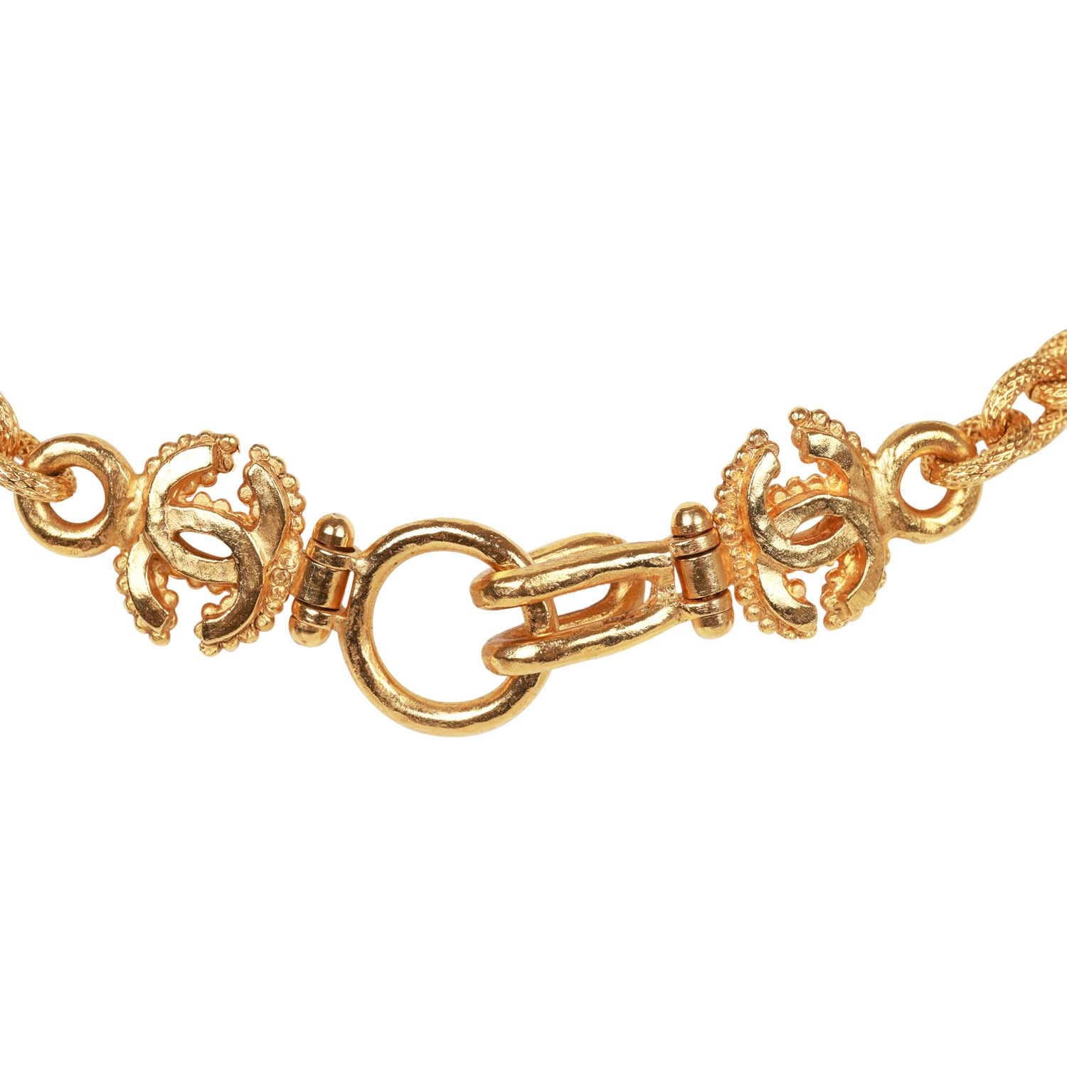 Vintage Chanel 24K Gold Plated Embossed CC Logo Pendant Necklace