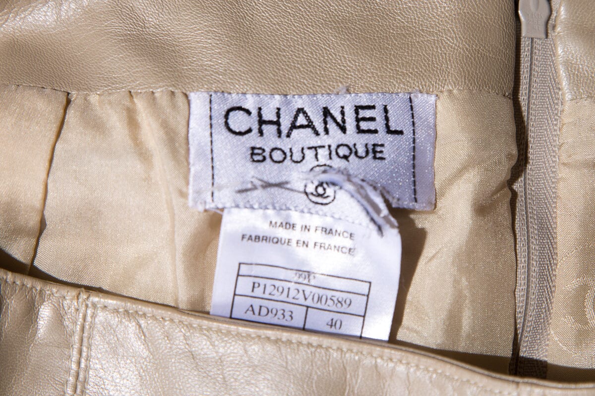 Chanel Vintage Gold Lambskin Leather Skirt SZ 40