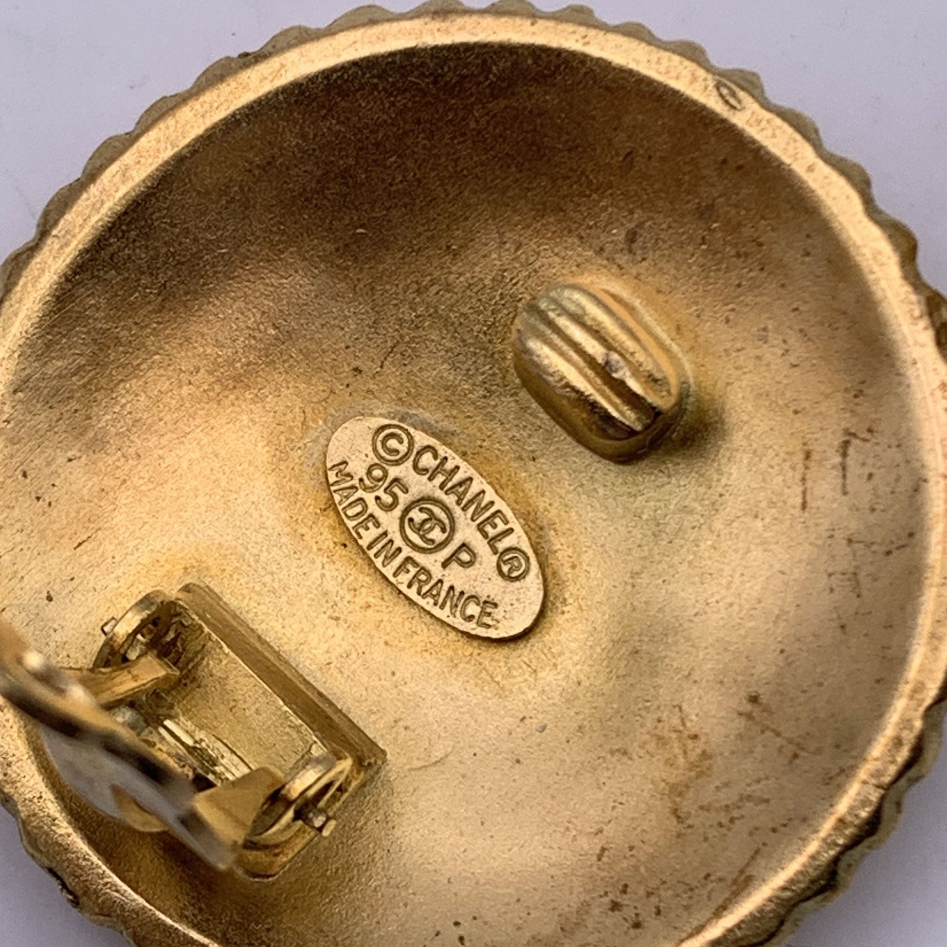 CHANEL Vintage Gold Metal Round Coco Clip On Earrings