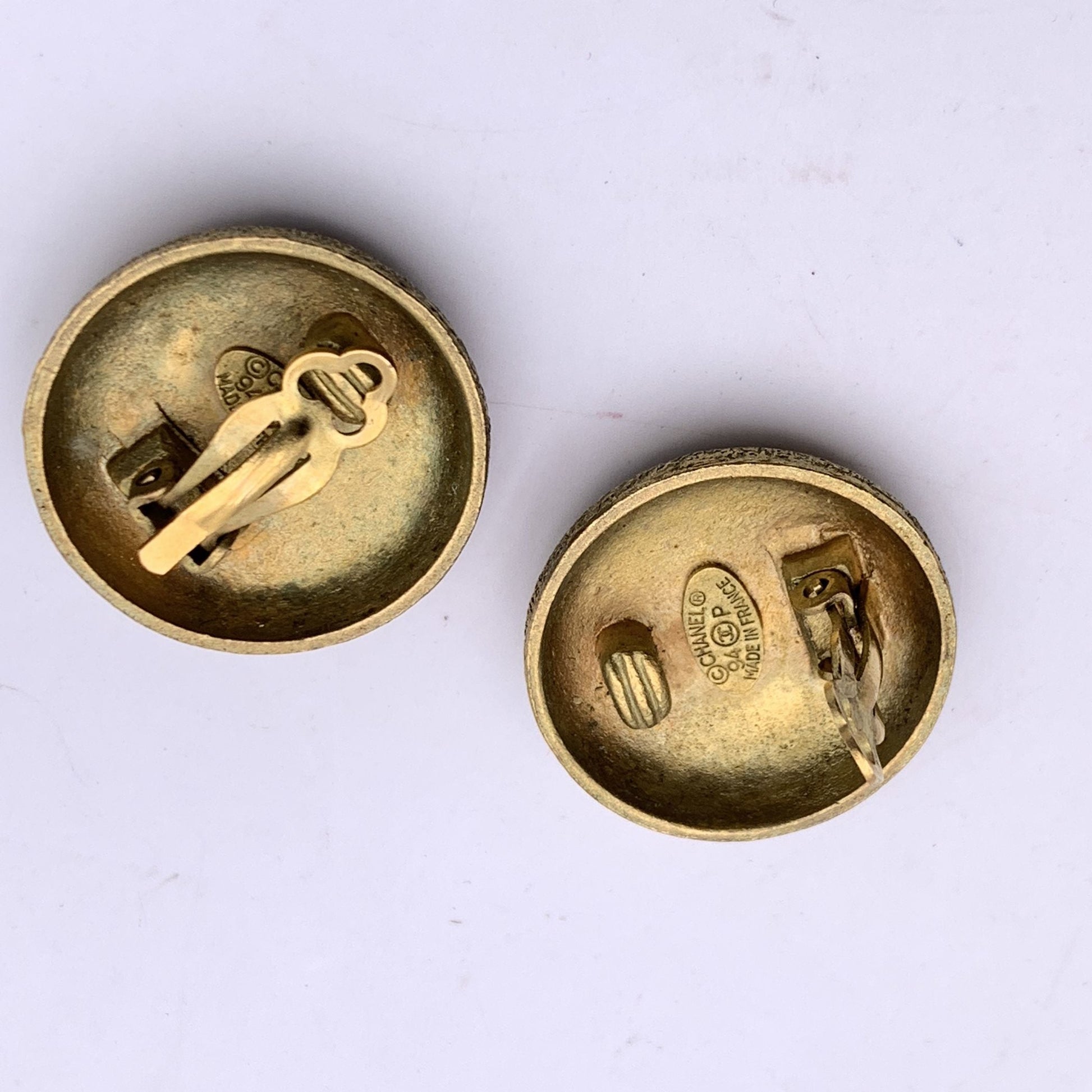 CHANEL Vintage Gold Metal Round Embossed Cc Logo Clip On Earrings