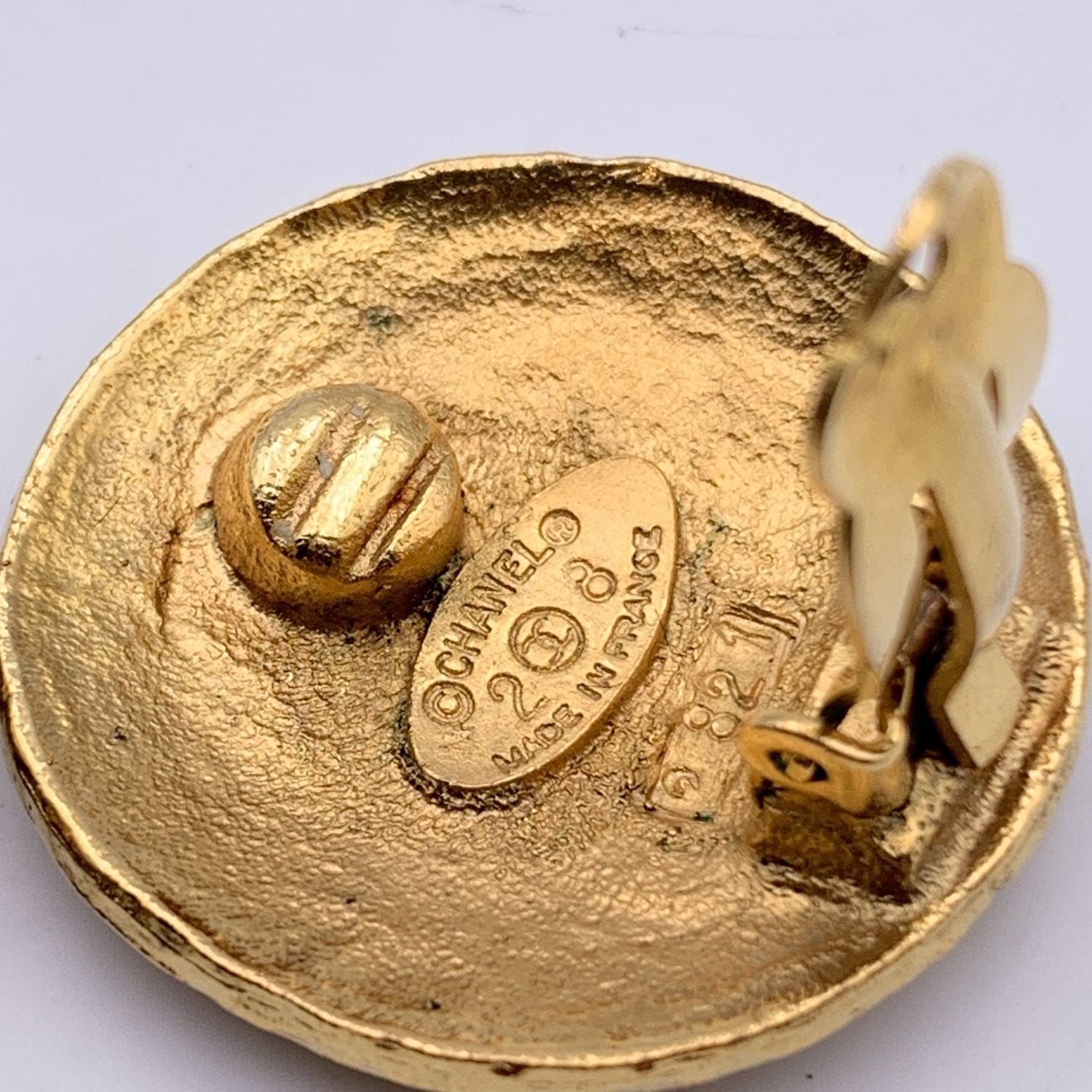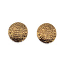 CHANEL Vintage Gold Metal Round Embossed Clip On Earrings