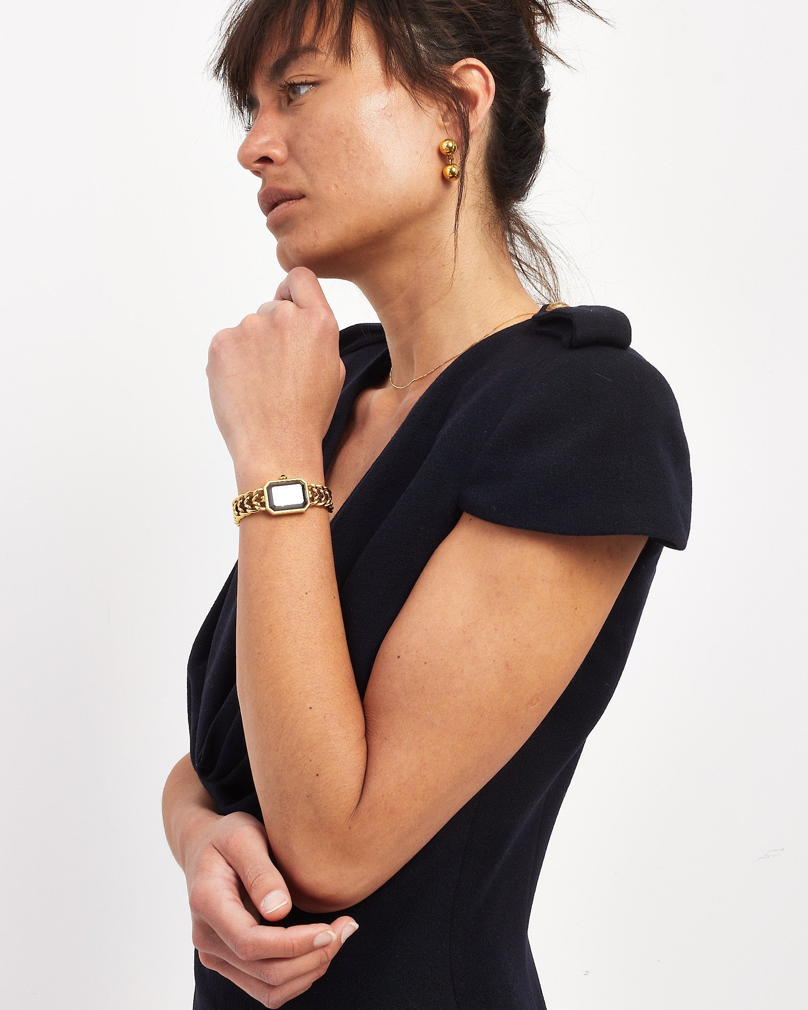 Chanel Vintage Gold Plated Round Drop Earrings