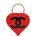 Vintage Chanel Heart Vanity Bag Red and Black Patent Antique Gold Hardware