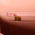 The larger parent bag is lined in pink leather featuring a zip pocket with CC logo pull and slip pocket underneath on the rear wall. The smaller child bag is lined in pink leather featuring a slip pocket on the rear wall.