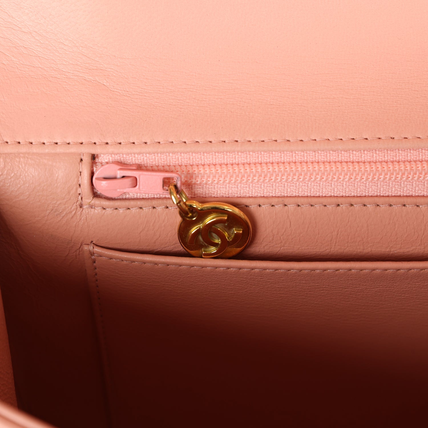 Vintage Chanel Kelly Parent and Child Flap Bag Set Pink Lambskin Gold Hardware
