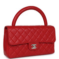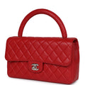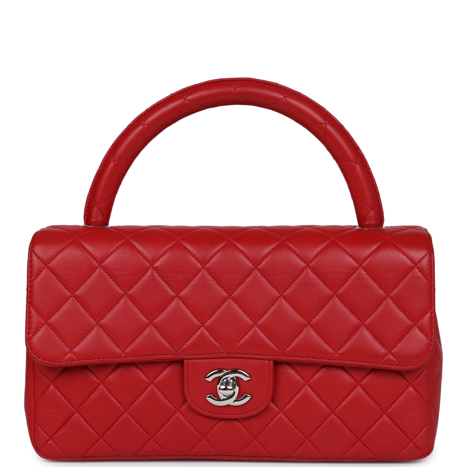 Vintage Chanel Kelly Parent Flap Bag Red Lambskin Silver Hardware